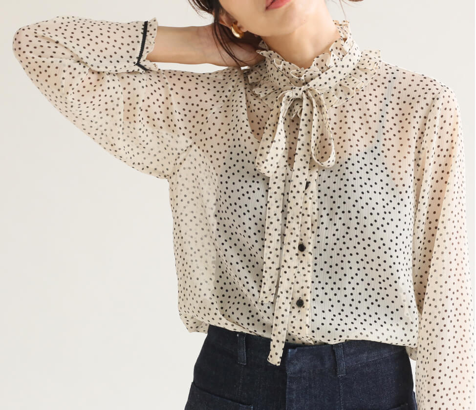 - 大人顔のドット柄ブラウス。