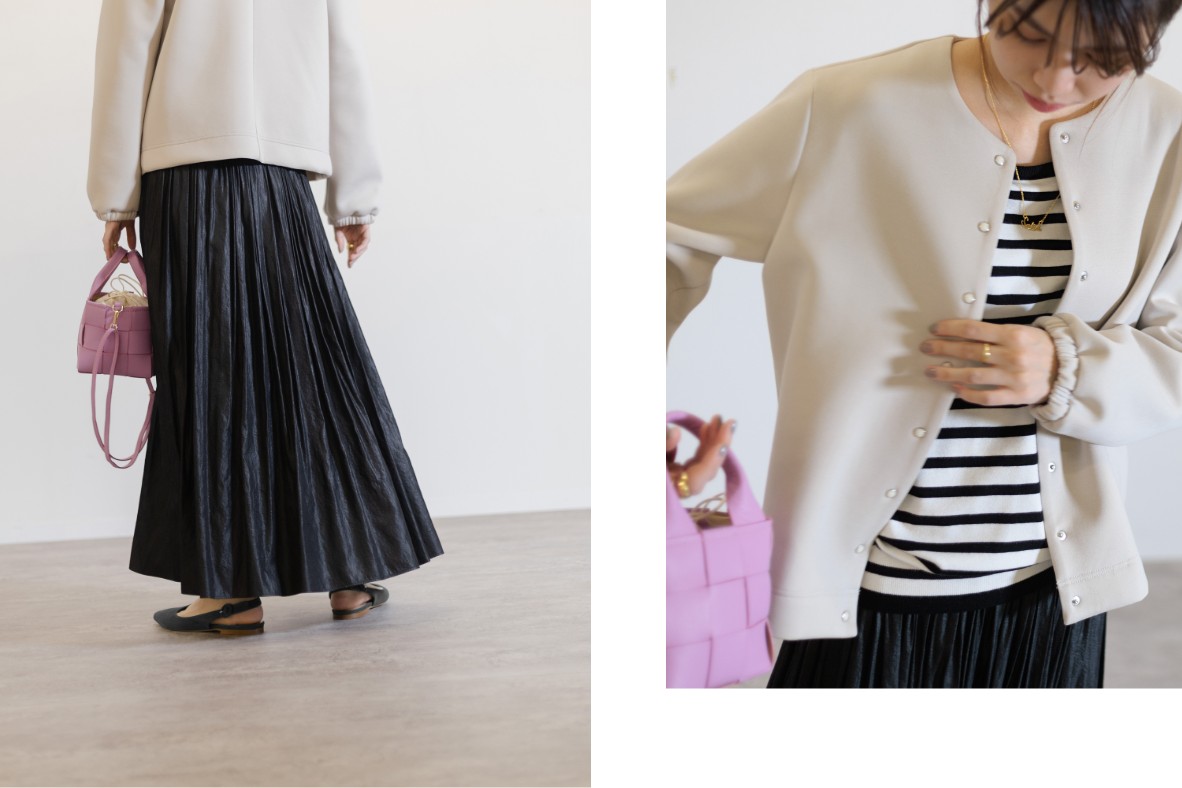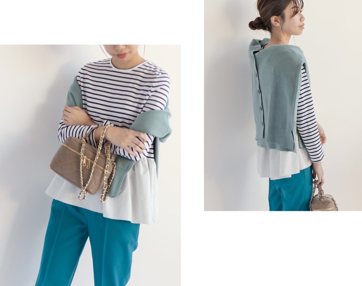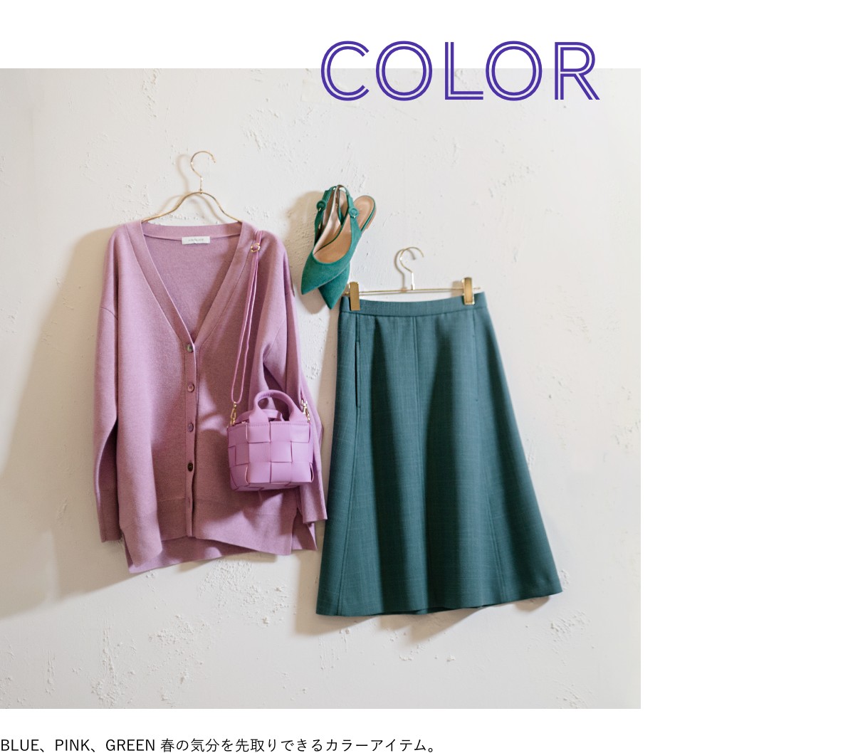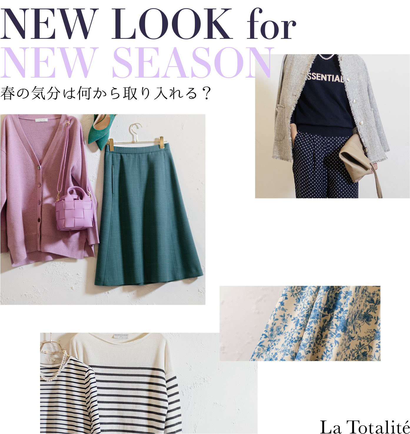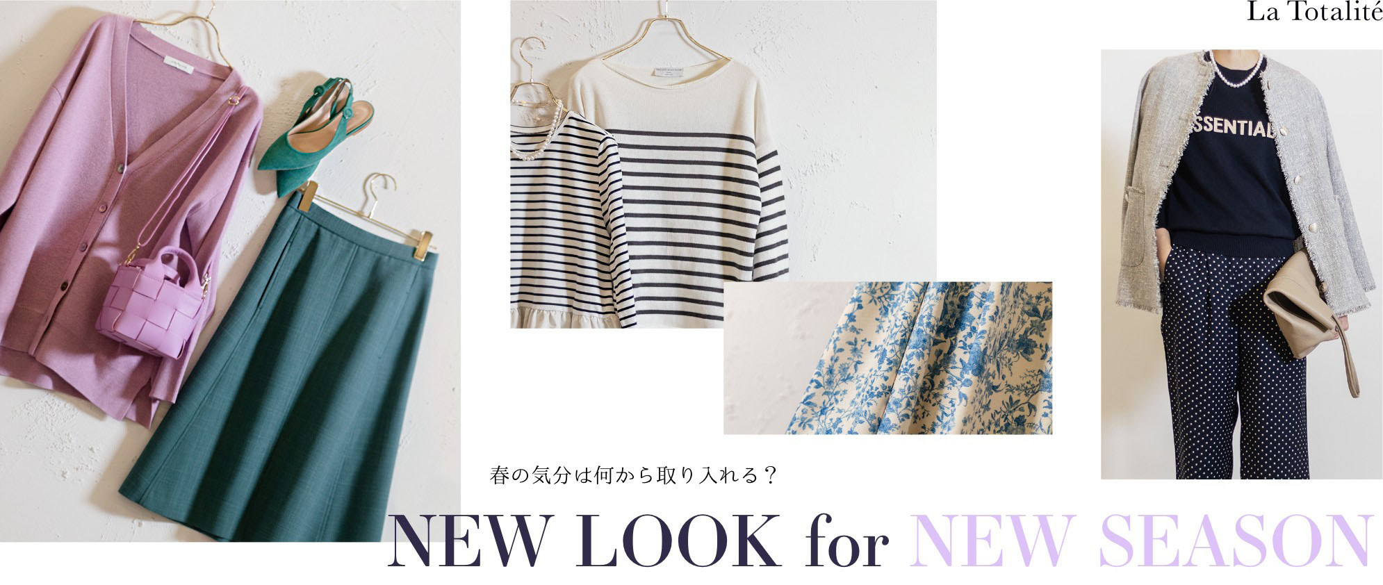 そろそろフレッシュな気分を 真冬のファッションに加えくなるころ。 これから気になるPRE SPRINGアイテムをご紹介。 今年は自由なMIXスタイルで楽しむのもおすすめ。 春の気分は何から取り入れる? La Totaliteボーダーペプラムカットソー◆¥8,800(税込)La Totalite●ドロストギャザーテーパードパンツ¥13,200(税込)La Totalite16GミラノリブVネックカーディガン◆¥14,300(税込)La Totalite16G天竺Vネックプルオーバー◆¥12,100(税込)La Totalite【TRICOTS JEAN MARC】ボーダー ボートネック プルオーバー◆¥14,080(税込)La Totalite【MARLON/マルロン】 TOTE BAG◆¥12,100(税込)La TotaliteTRダブルブレストジャケット◆¥23,100(税込)La Totaliteスラブギャバフレアースカート¥15,400(税込)La Totaliteミックスツィードノーカラージャケット¥23,100(税込)La Totalite天竺ロゴプルオーバー◆¥13,200(税込)La Totaliteドットツイルタックワイドパンツ¥14,300(税込)La Totalite【CORSO ROMA9/コルソローマノーヴェ】バックストラップポインテッドフラット¥24,200(税込)La Totalite【TRICOTS JEAN MARC】ボーダー ボートネック プルオーバー◆¥14,080(税込)La Totalite【BLEU FORET/ブルーフォレ】VELVET COTTON SOX¥1,650(税込)La TotaliteLA TOTALITE アンクルストラップサンダル◆¥12,100(税込)La Totalite【MARLON/マルロン】 TOTE BAG◆¥12,100(税込)La Totaliteボタニカルフラワータックスカート◆¥16,500(税込)La Totalite16GミラノリブVネックカーディガン◆¥14,300(税込)La Totaliteダブルクロスフレアスカート¥14,300(税込)La Totaliteドットフリルカラーシャツ◆¥14,300(税込) La TotaliteSAMBAボーダープルオーバー◆¥12,100(税込)La Totaliteブライトツイルプリーツスカート◆¥16,500(税込)La Totalite【Maison Vincent /メゾン ヴァンサン】メッシュレザー2WAY BAG¥20,900(税込)