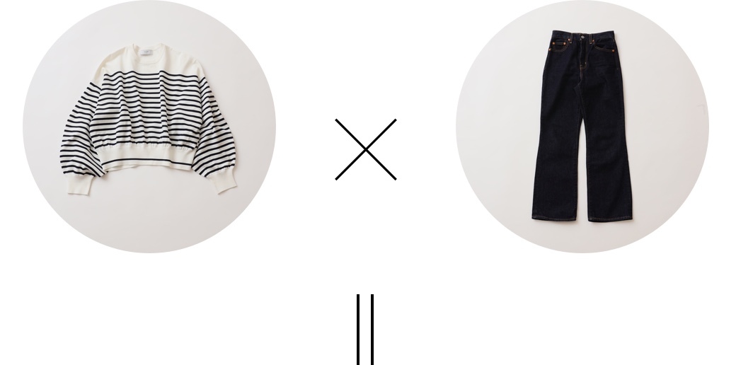 SLOBEが大事にしているエッセンス、〝ボーダートップス〟と〝デニム〟