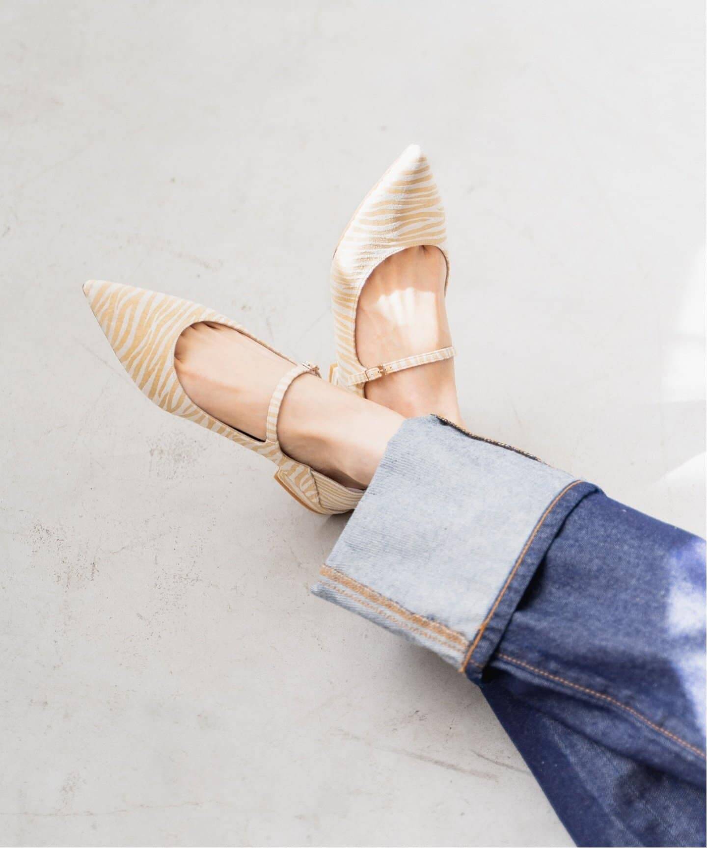 ストラップシューズ華奢なストラップのパンプスは昨年に続き今年も継続トレンド。デニム×ソックスとあえて合わせて、お洒落指数が高いシックな女っぽスタイルにアップデートを。
