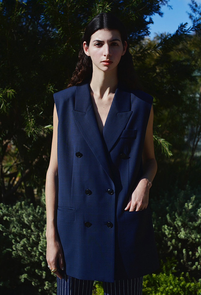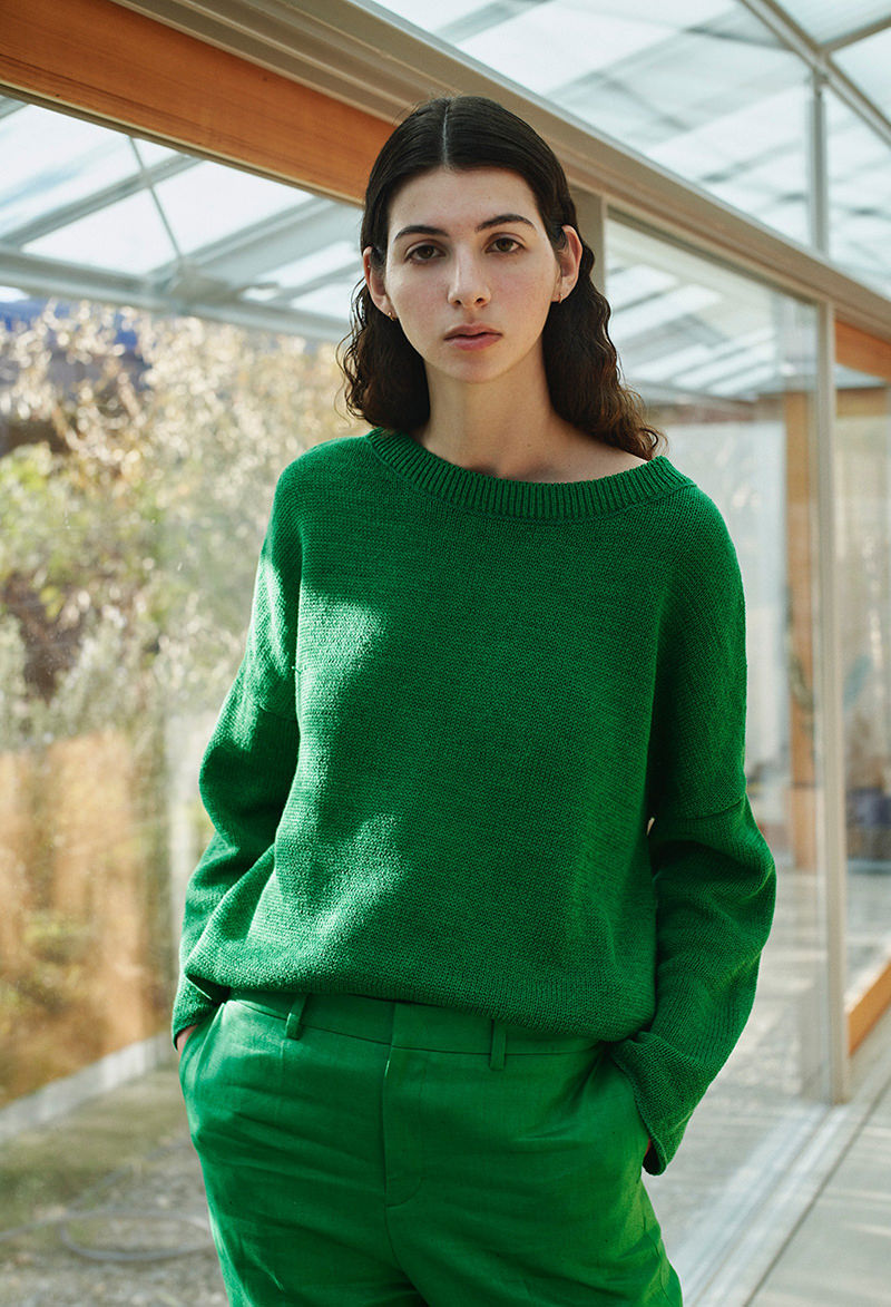 「鮮度ある色味のウエアをモダンに取り入れるバランス」