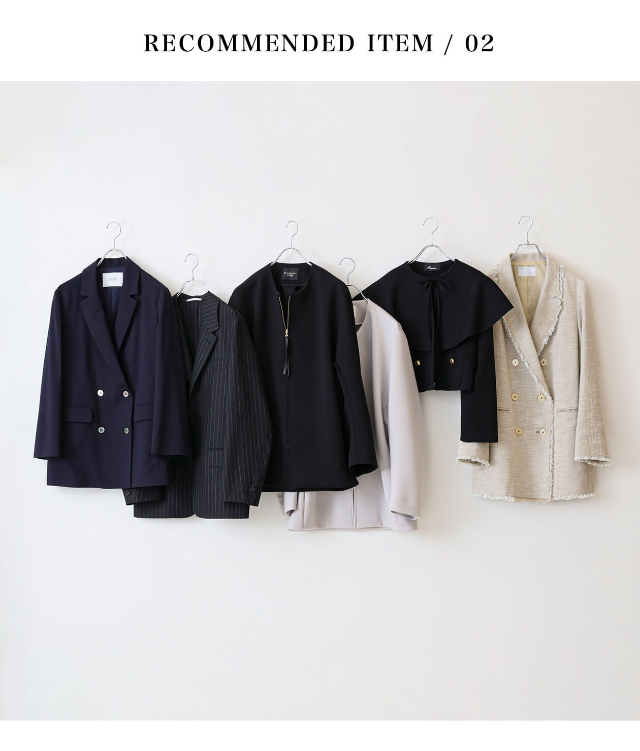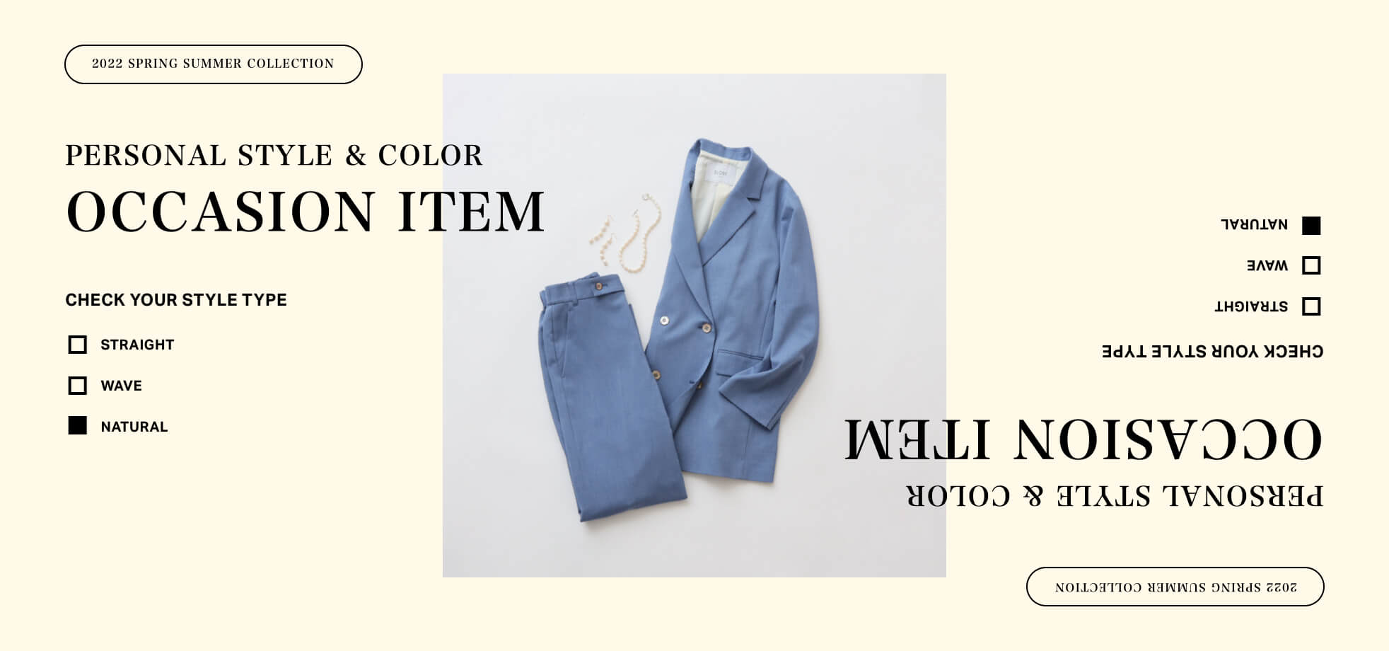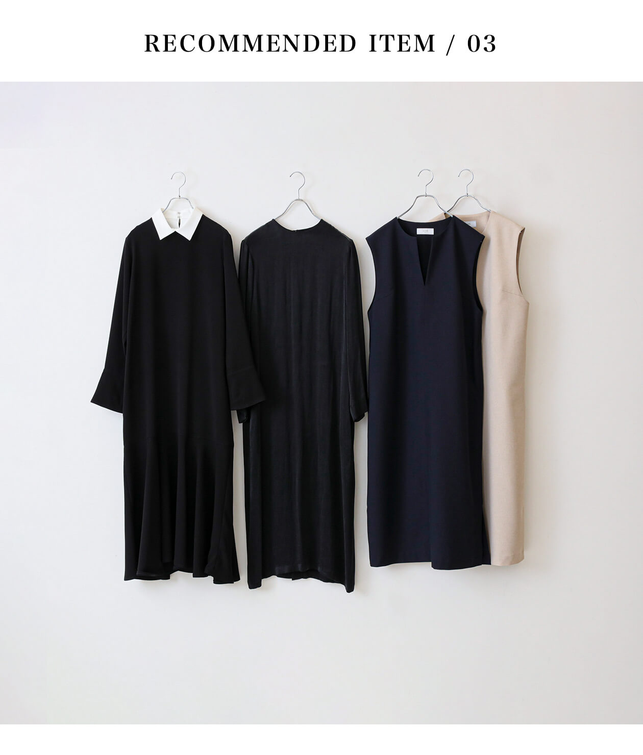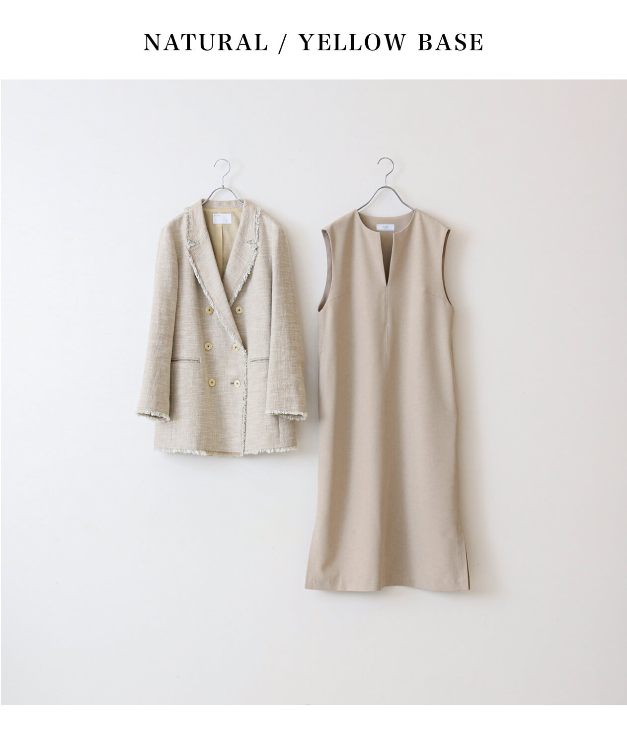 着る機会が少ないからこそ、外さない1着を持っておきたいオケージョンアイテム。ナチュラルタイプはベーシックなデザインを意識しつつ、サイズ感で変化をつけるのがポイント。セットアップはオーバーサイズ、ワンピースは丈が長めのものがおすすめです。