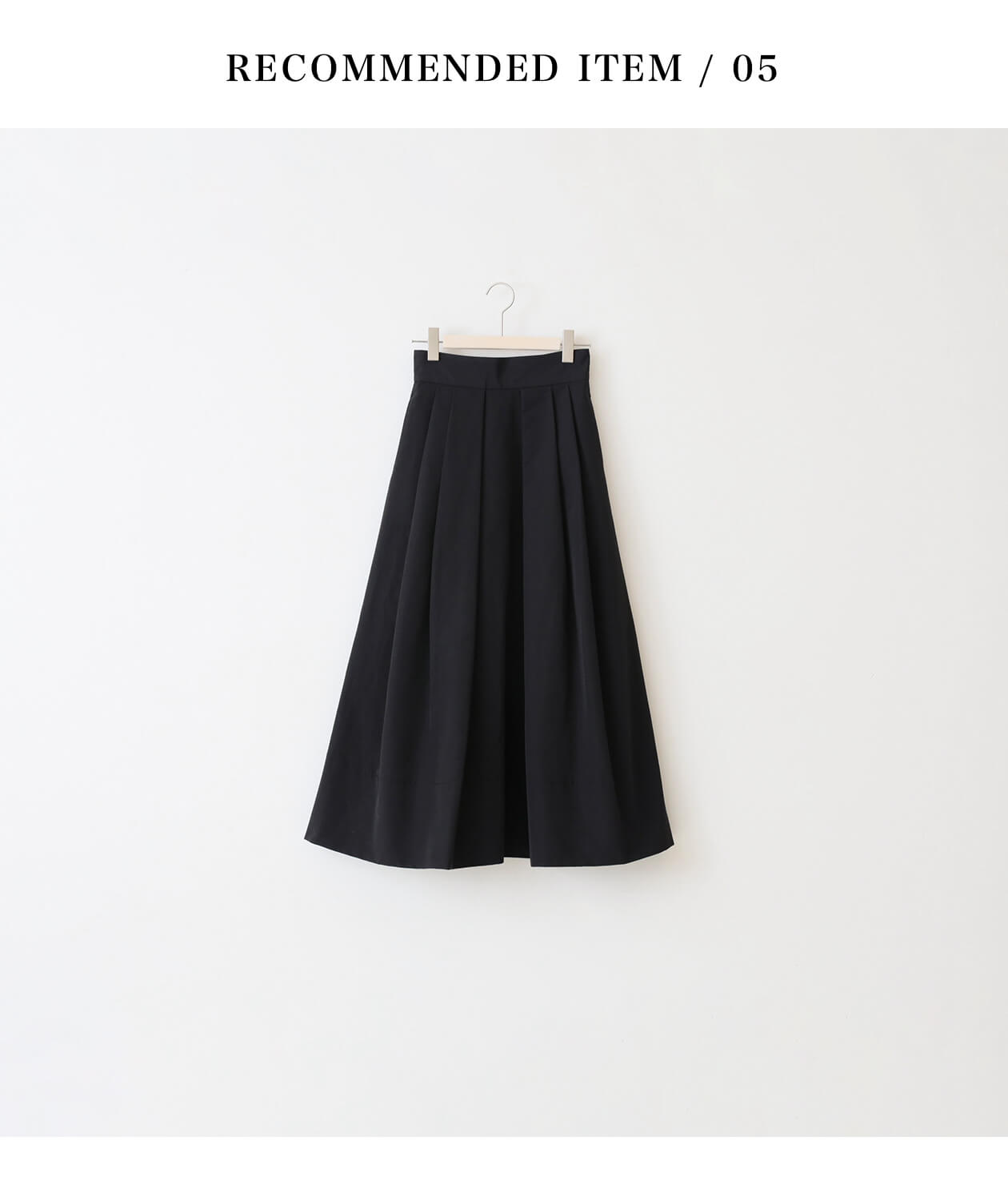 - スカートはロング丈でボリュームのあるデザインのものがおすすめ。チュールなどの甘すぎる素材や、ひざ丈以上のアイテムは避けた方がベターです。ハリ感のある素材のマキシフレアスカートは、黒だけどドラマティックで華やかなムードたっぷり。