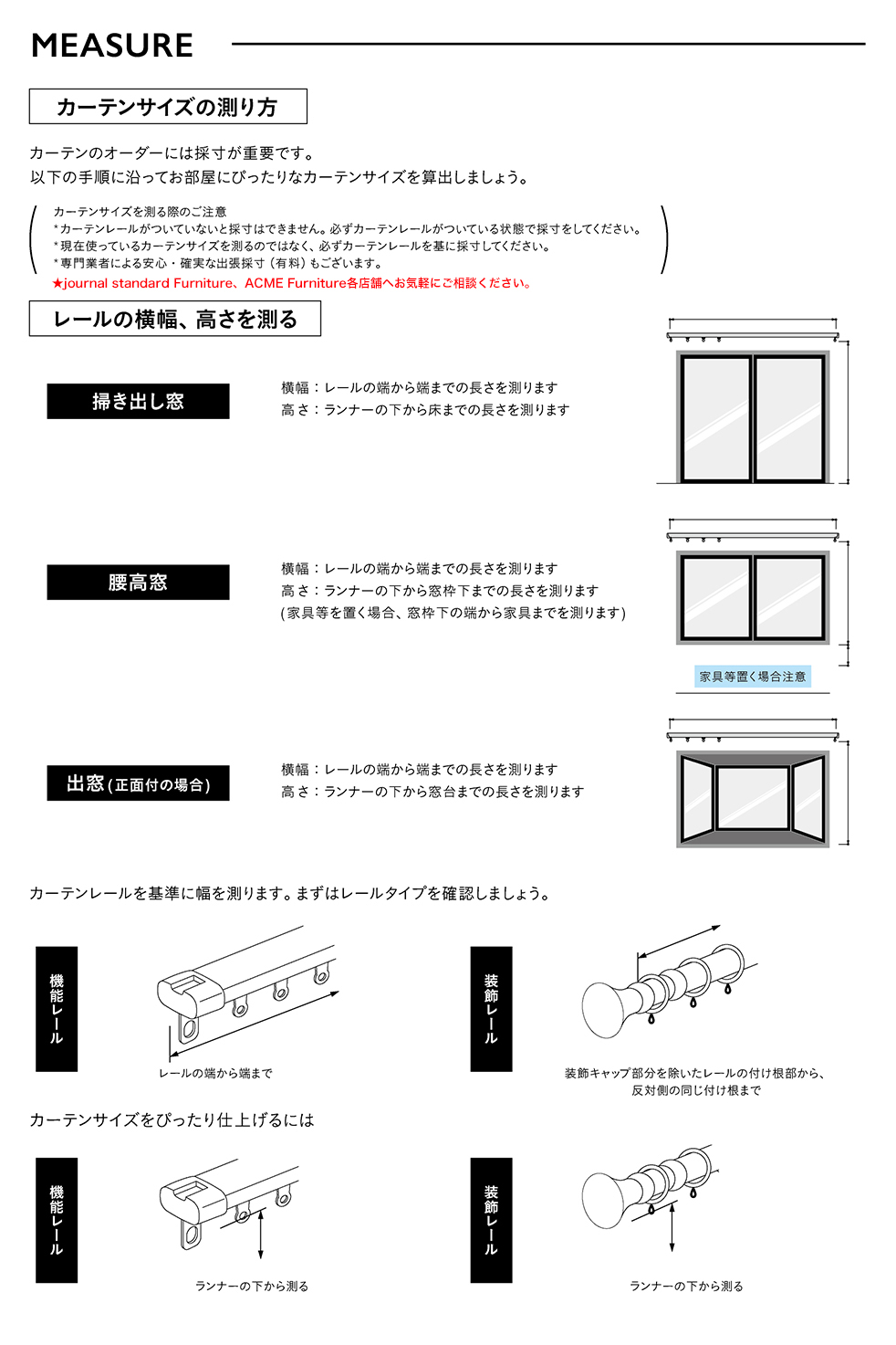 - ACME FURNTIUREのセレクトしているカーテンは50~60年代のアメリカの一般住宅で使用されていたプロダクトをイメージして製作しています。 日本の住宅にもスッと馴染むように、全てのカーテンはサイズオーダーはもちろん、アメリカンスタイルをより体現できるような天井付けレールなどのパーツも多数ご用意しています。