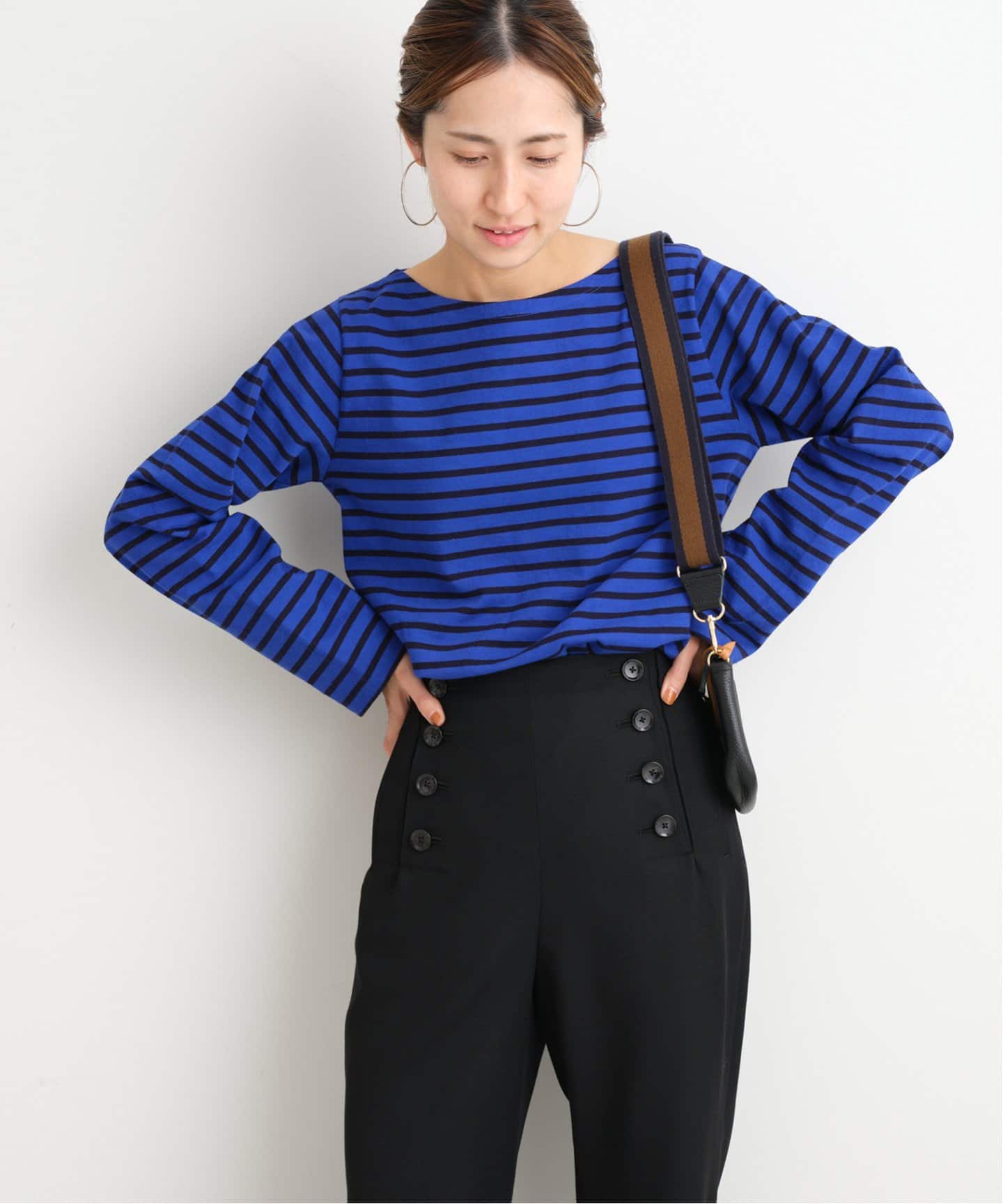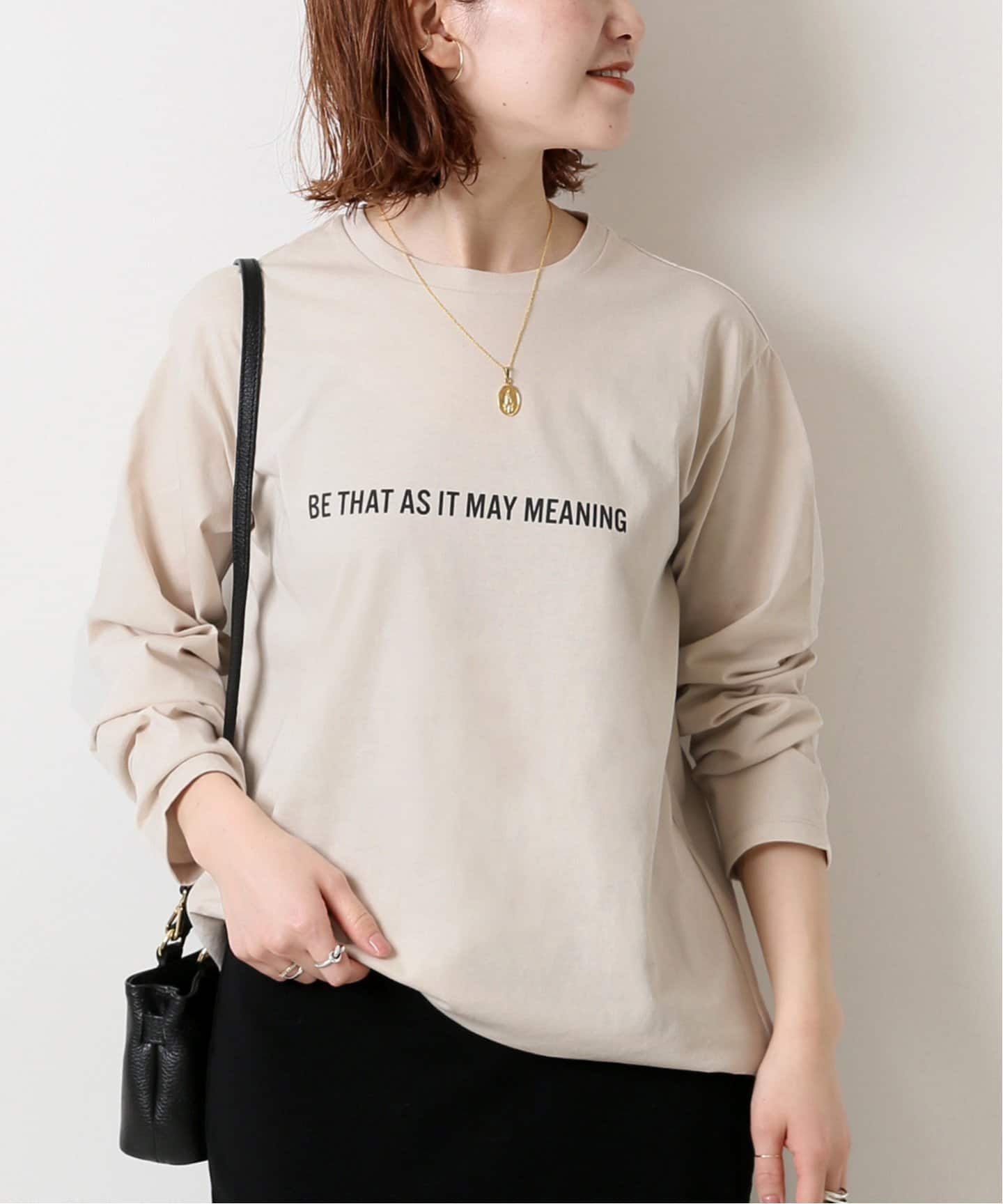 クリーンなカットソーをまず一枚春カジュアルは、こなれたベージュ系のロゴトップスでラフなムードを足し算。さりげないフォント使いにとどめて、クリーンな印象に仕上げるのがポイント。