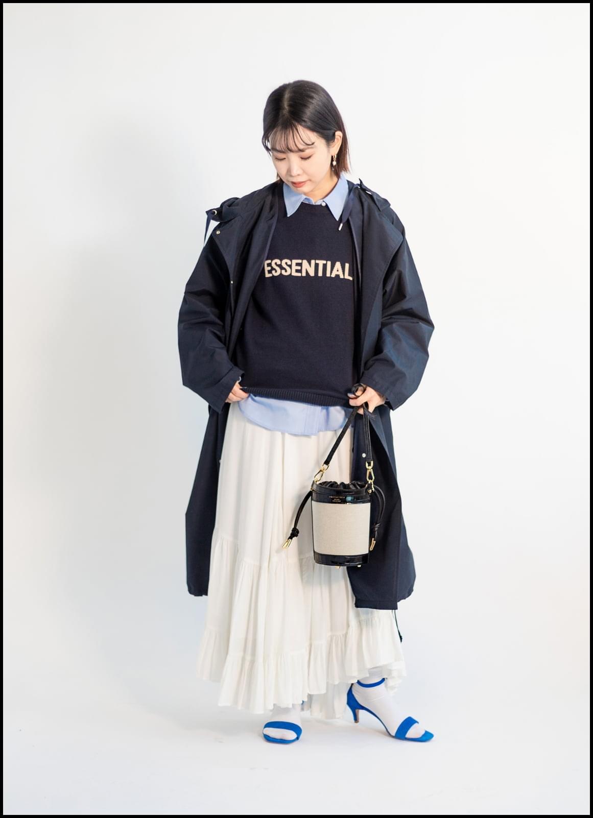 パンツ・スカートどちらにも合わせやすい丈感に仕上げました。
