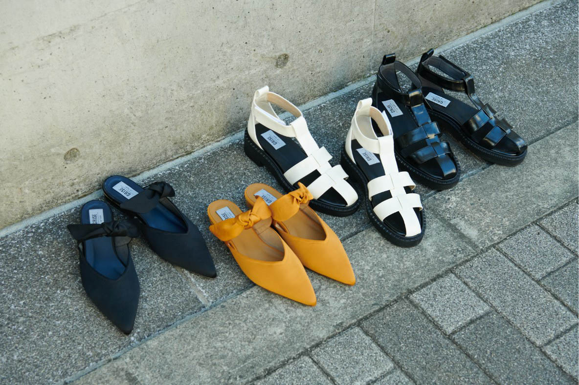 今年らしいボリュームの厚底グルカサンダルと、昨年即完売したサテンリボンミュールの新色が登場します。
