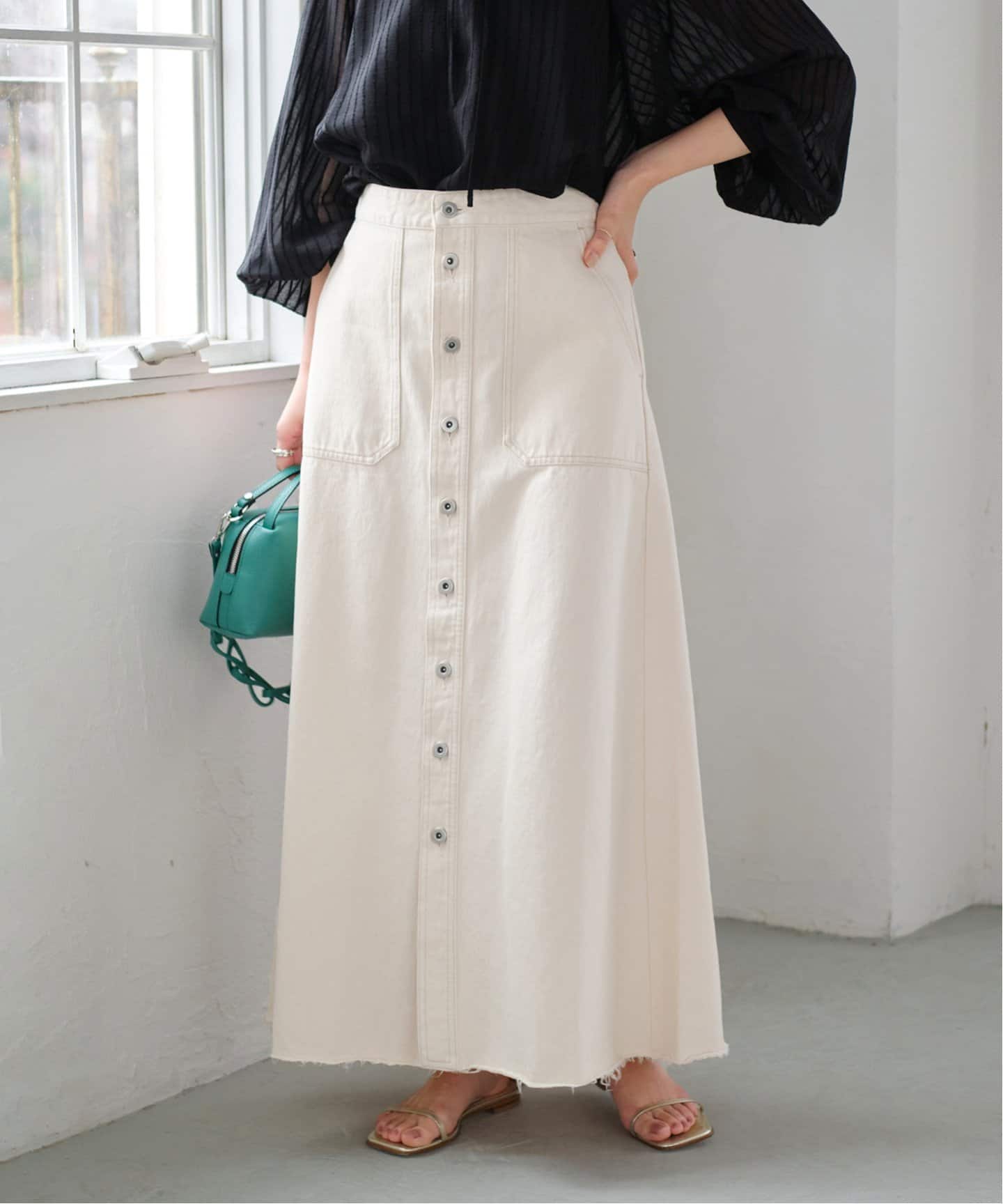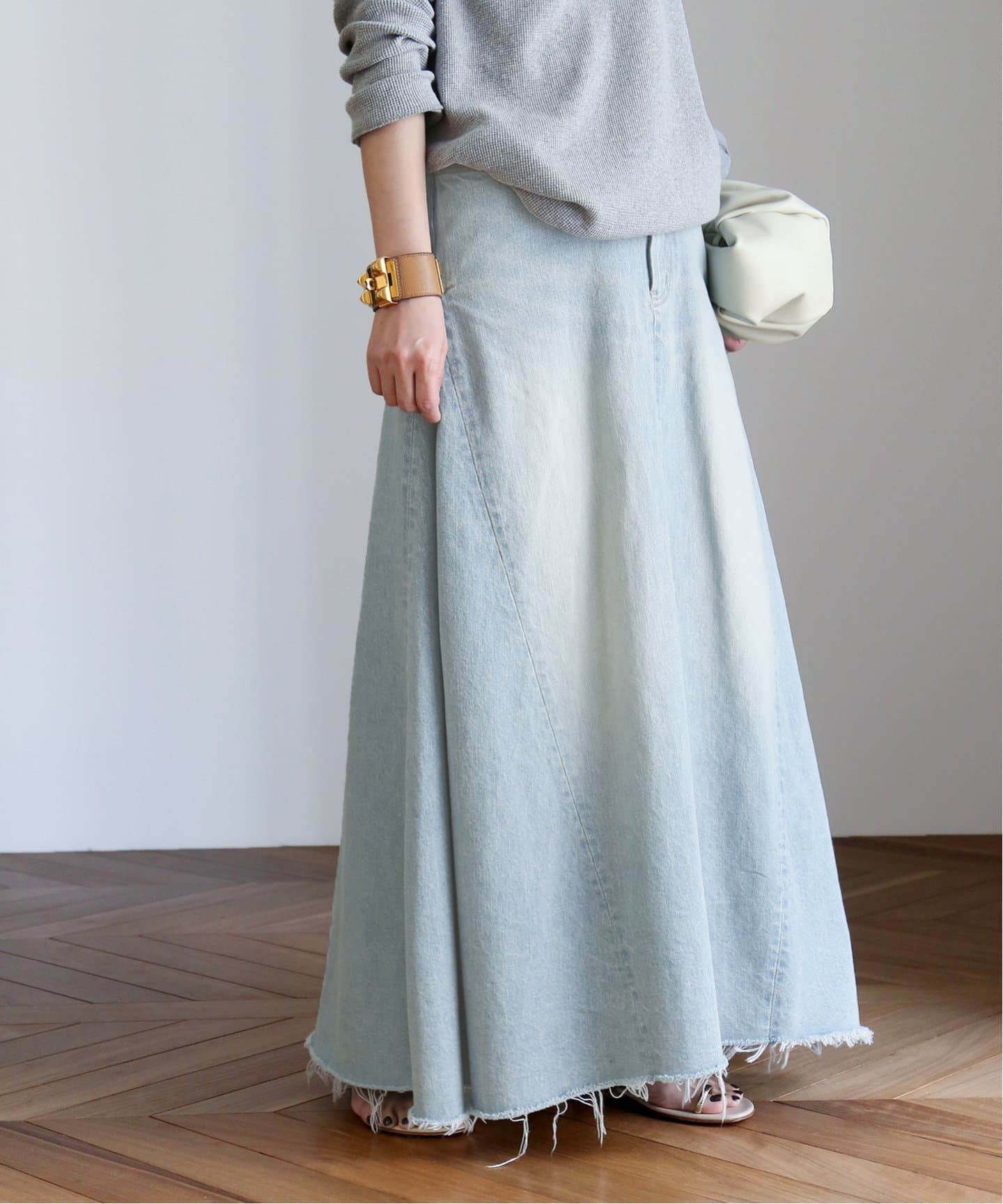 こなれ感と女っぽさがいい塩梅の旬シルエット2022年春夏トレンド筆頭に浮上したのがデニム。パンツは、フィット感がありつつ裾がほんのり広がったエレガントなデザインが◎。スカートは、フロントボタンがアクセント。