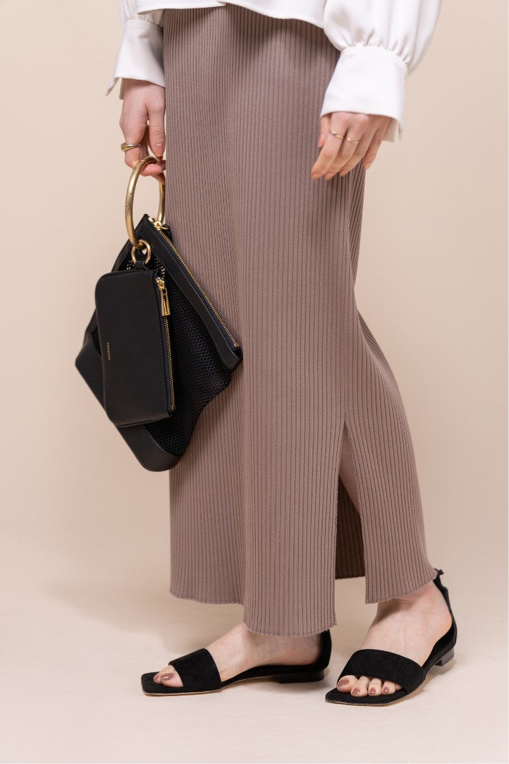 風をはらんで控えめに揺れるマーメイドラインが印象的な、上品かつ今年らしいロングスカート。