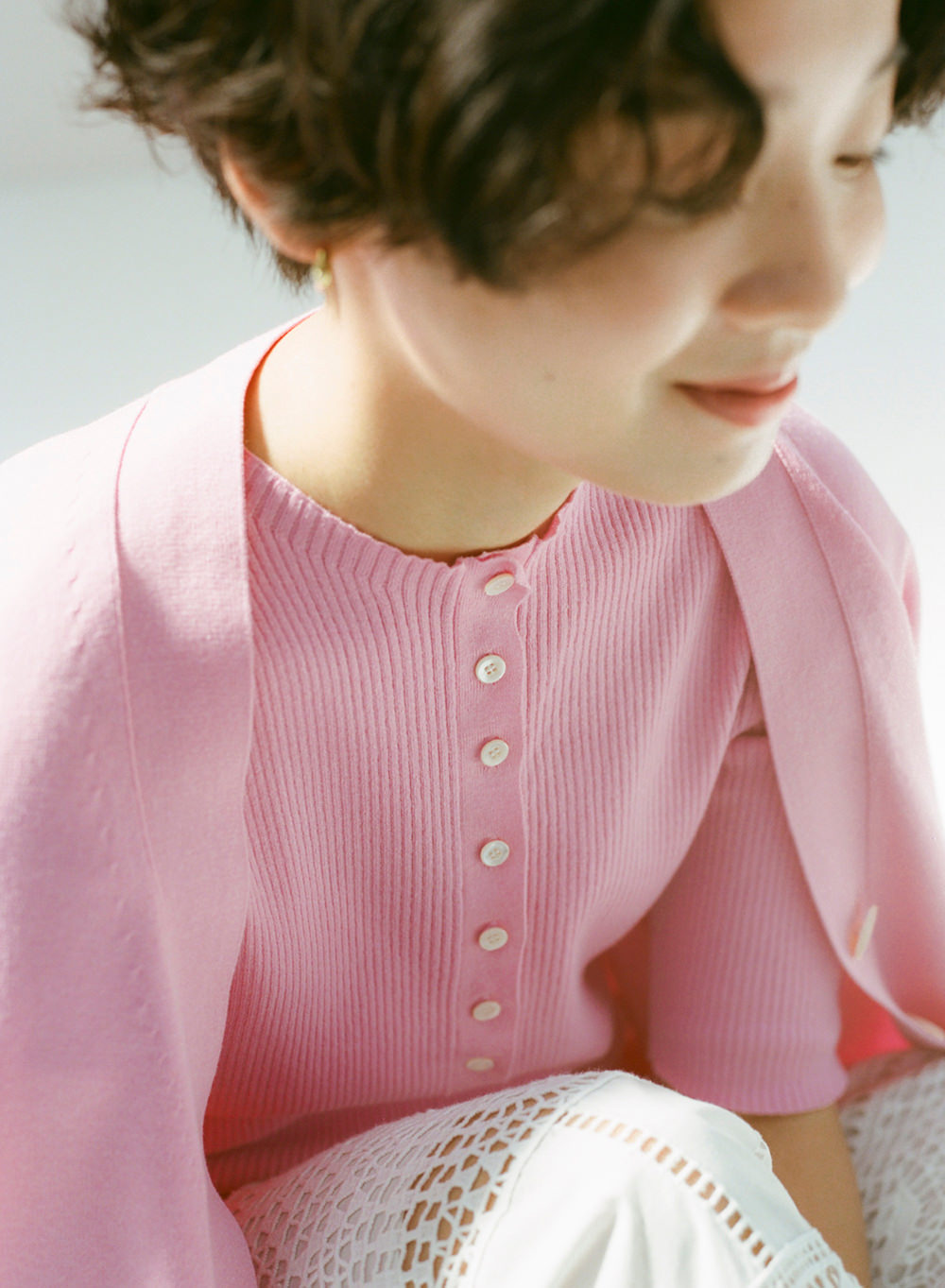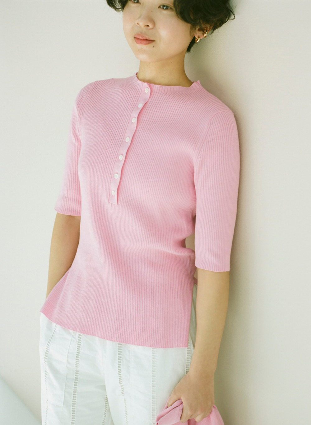 春に着たいシャリ感のあるニット。素材、着丈、袖のボリューム、スリット、ボタン... ベーシックなアイテムこそ数えきれない程のこだわりが詰まったものを選ぶことがMy styleに繋がる。