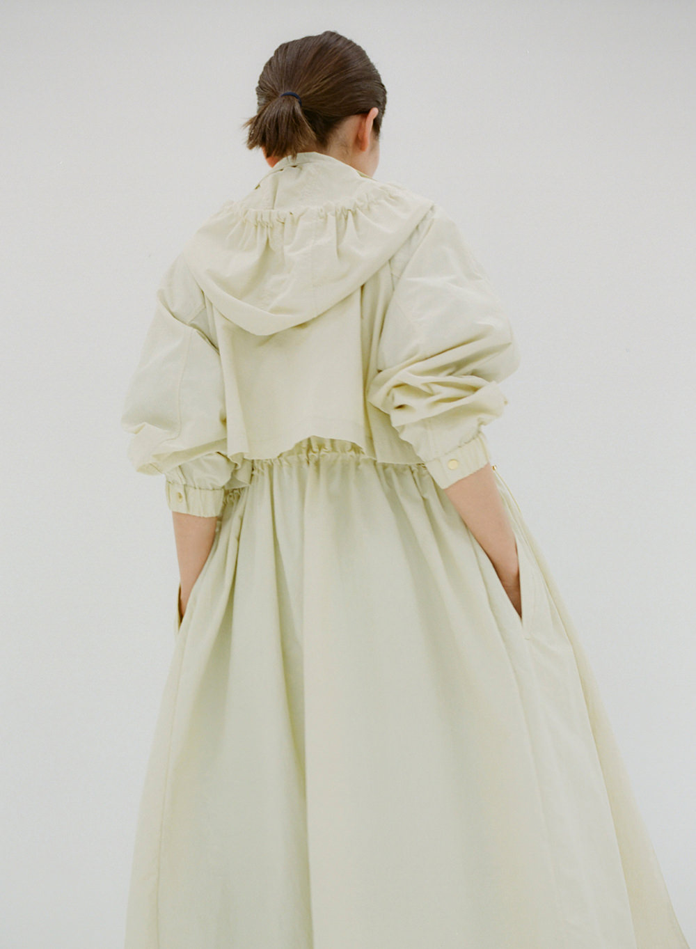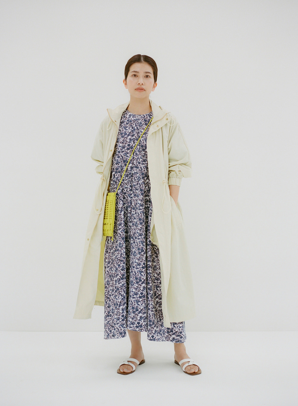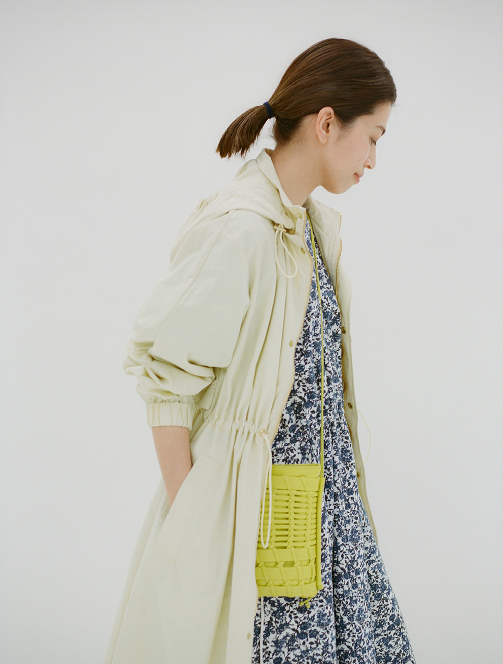 素材も染料も環境に配慮したエコ素材。天然色素の色合いは独特の柔らかい発色が特徴。カジュアルな雰囲気のスプリングコートをお気に入りのワンピースに羽織ってそんなレイヤードスタイルが”今”の気分。