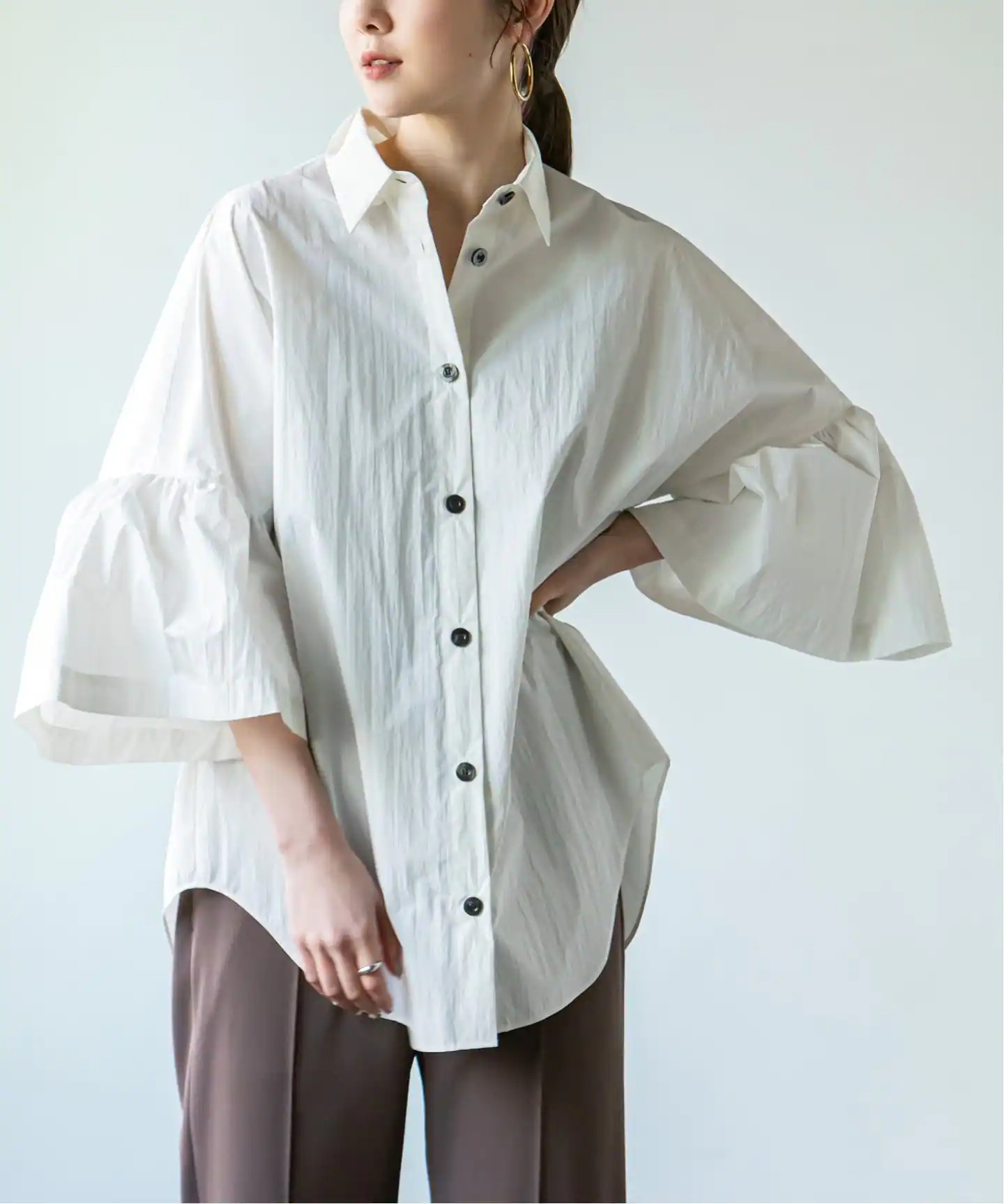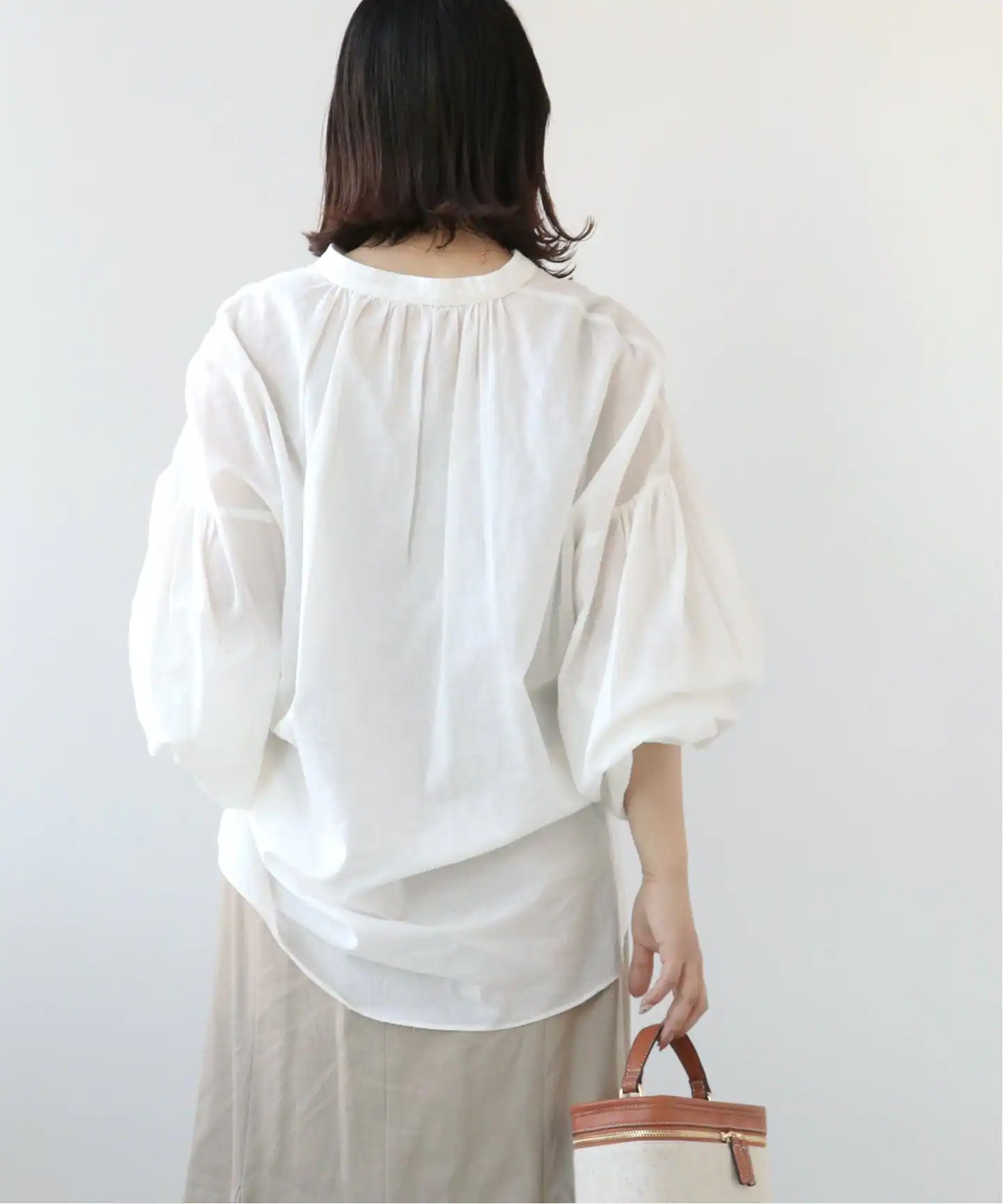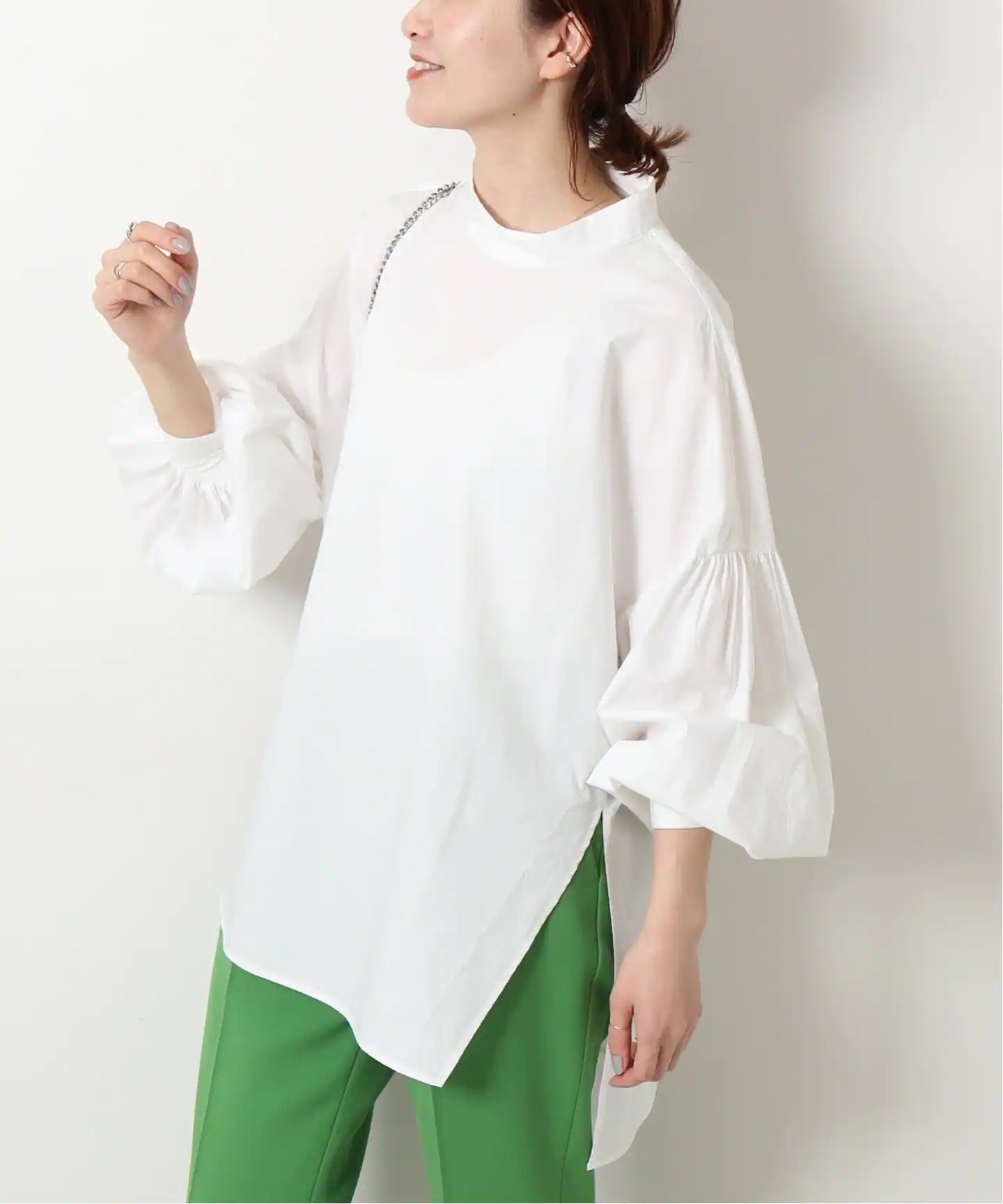 一枚あると重宝するボリューム袖ブラウスノーカラーなどのミニマルなフロントに対して、ふんわり華麗にフレアが広がるボリューム袖。シンプルコーデでもぐっと洒落見えするから、1枚あると便利なデザイン。