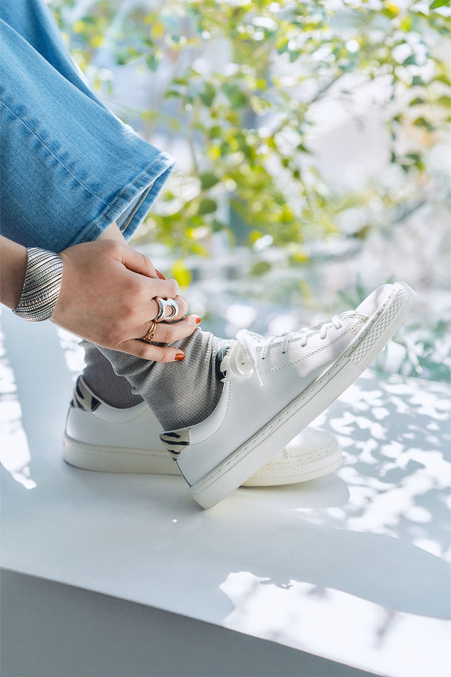 春スタイリング世界中で愛されている大人気ブランド「CONVERSE」のALL STAR COUPE からゼブラ柄をポイントとしたアレンジスニーカーが登場。ホワイトのスムースレザーに、箔プリントのゴールドロゴが上品に映える1足をSpick & Span STAFFがこの春おすすめする、9スタイリングと共にご紹介いたします。