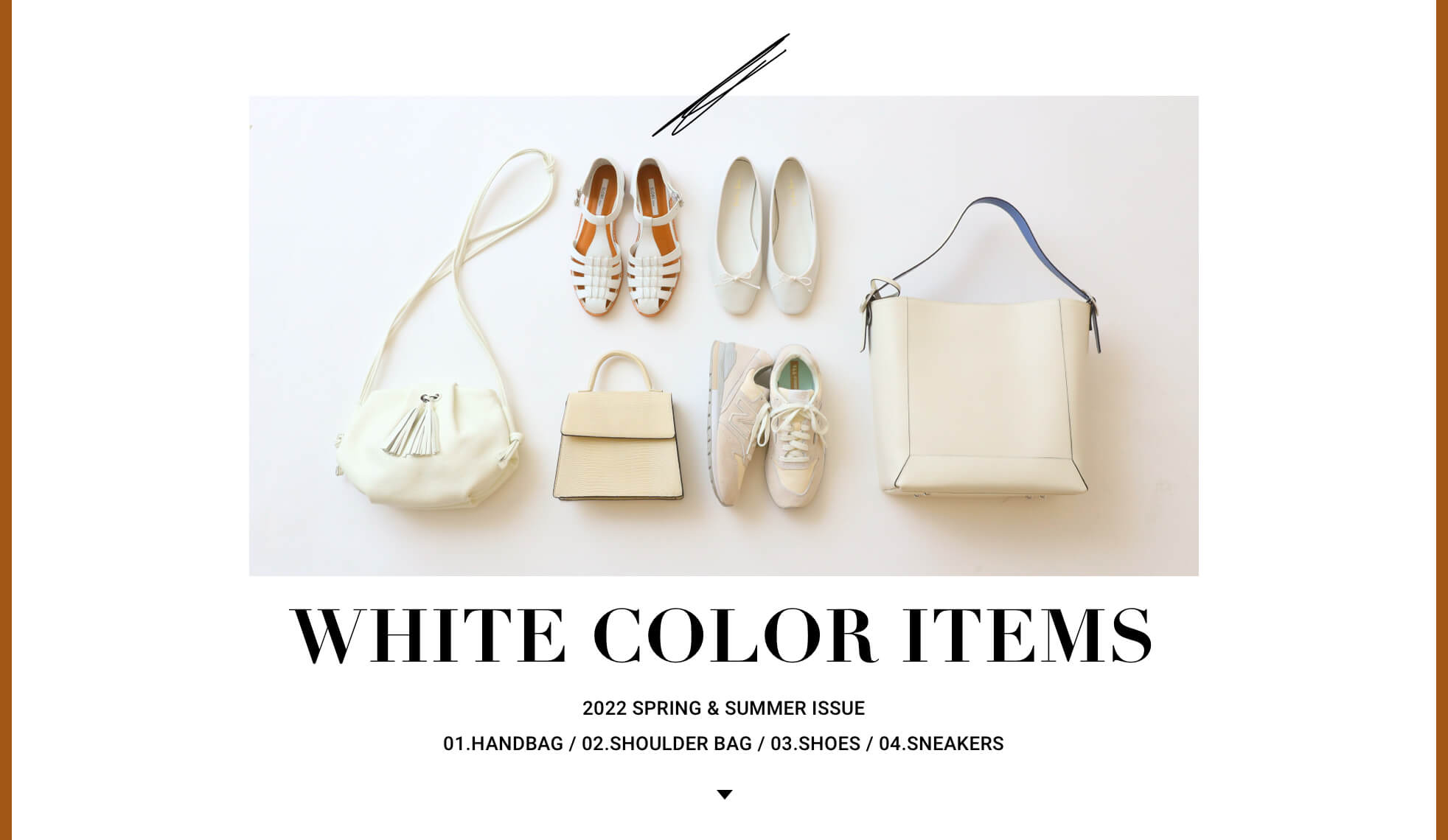 クラシックバッグもホワイトなら新鮮!クラシカルなハンドルバッグは黒を選びがちだけど、ホワイトならフレッシュでクリーンな雰囲気に刷新。コーデに春らしい軽さときちんと感をプラス。