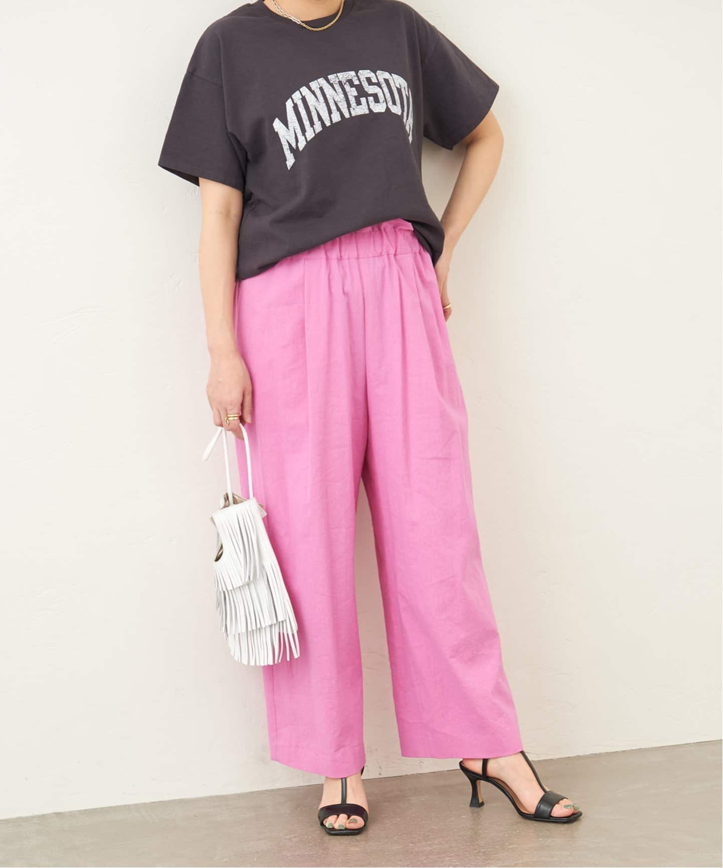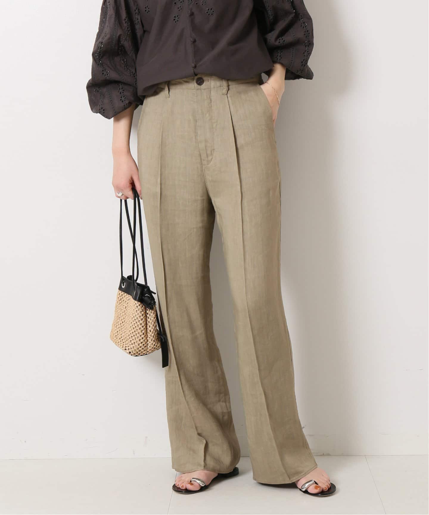 大人顔ワイドパンツが狙い目肩肘張らないリラックス感が魅力のリネンワイドパンツ。ワンタックが入ったメンズライクなデザインや程よい落ち感のあるキレイめシルエットが今年っぽい。