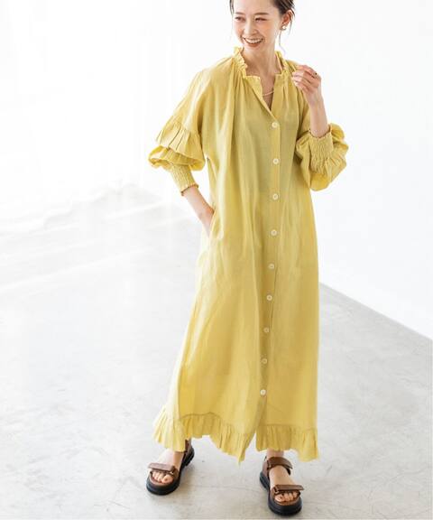 最旬リネンワンピース今年らしいイエローの盛り袖フェミニンワンピースから、着回し力の高いVネックシャツワンピースまで。リネンならではの清涼感で、マキシ丈でも重たくならず◎。