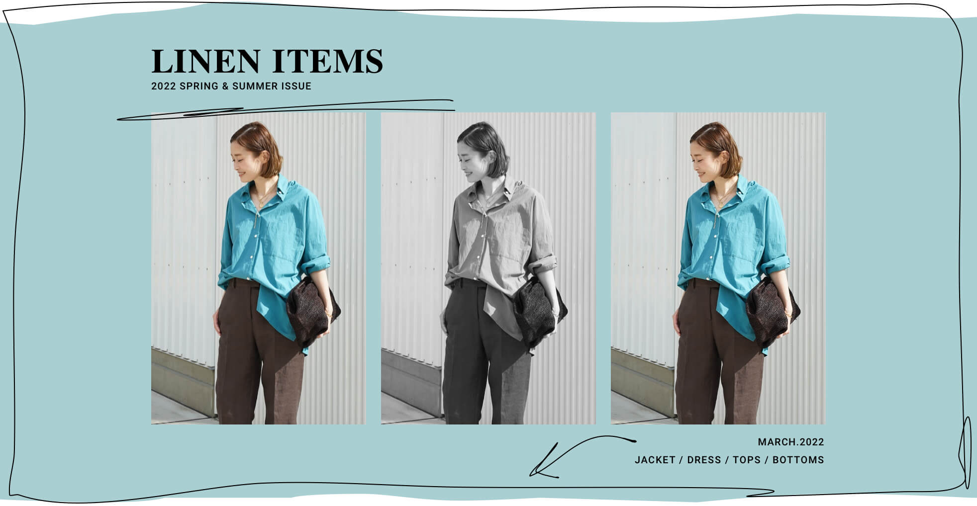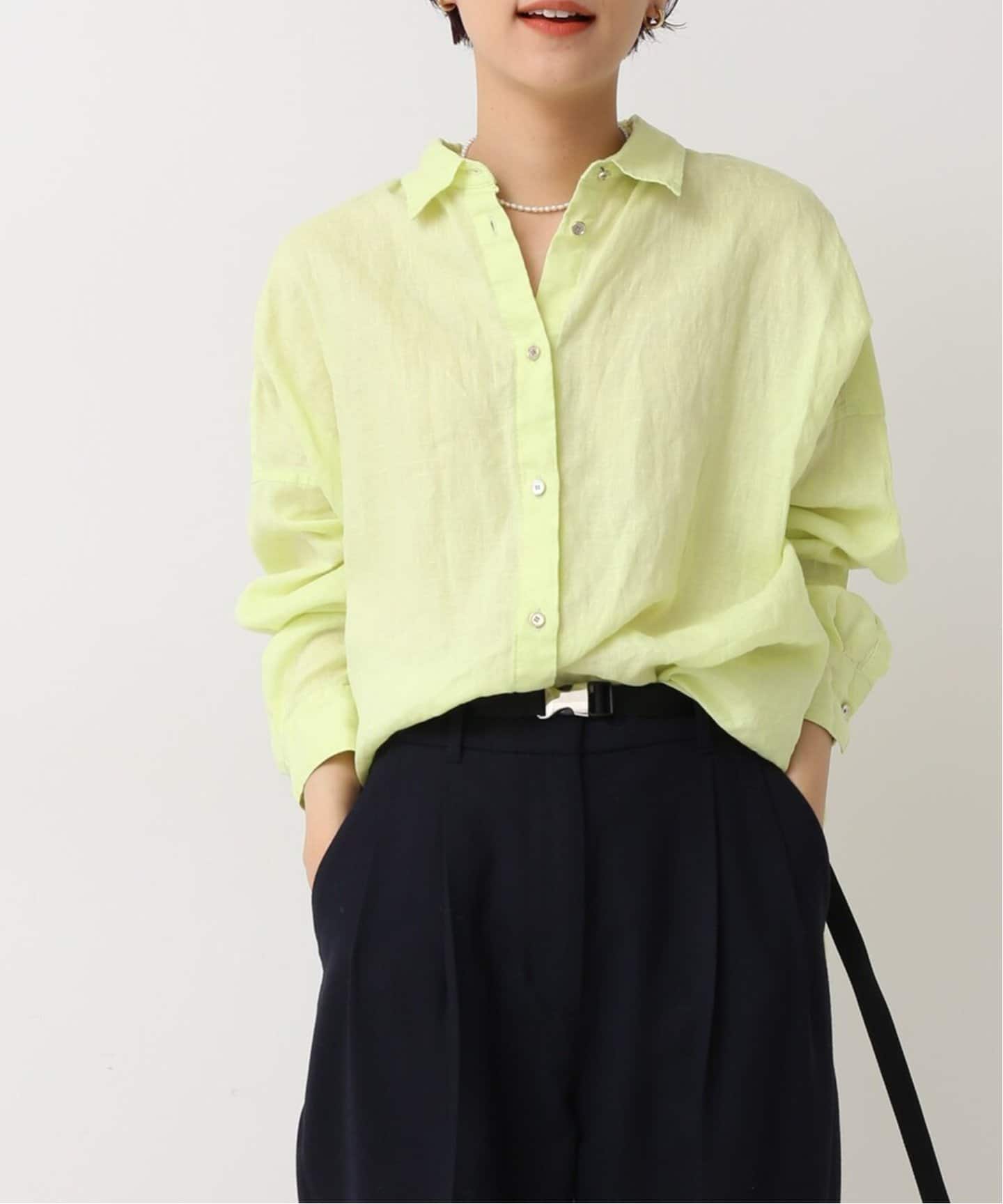 リネンで続々オーバーサイズのリネンシャツは春夏の定番。今年はトレンドカラーのライムグリーンにトライして。たっぷりのラッフル袖が映えるレディなブラウスもリネンで登場。