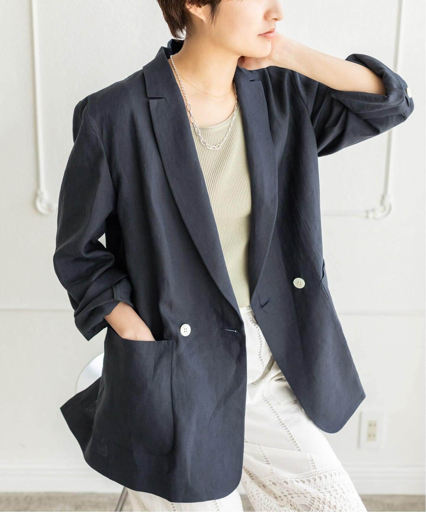 リネンで決まり春コーデに欠かせないジャケットはリネンならナチュラルで素敵なムードがアップ。シワになりにくい素材など、嬉しい機能も。袖をまくって着こなすのがおすすめ。。