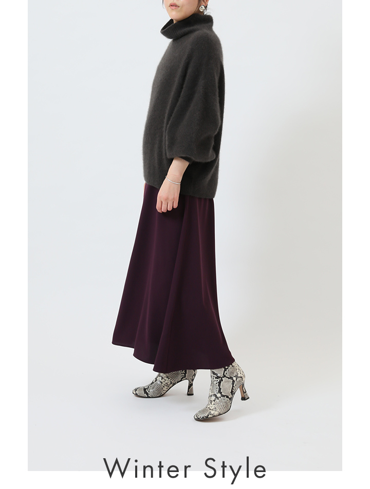 真冬はざっくりニットにインして、スカートの着こなしに。 辛口なパイソンブーツでコーデにリズムをプラス。