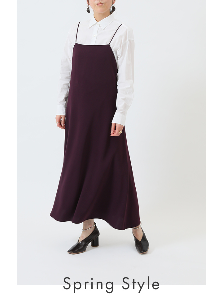 - キャミワンピースはカットソーやリブニットと合わせがちだけど、