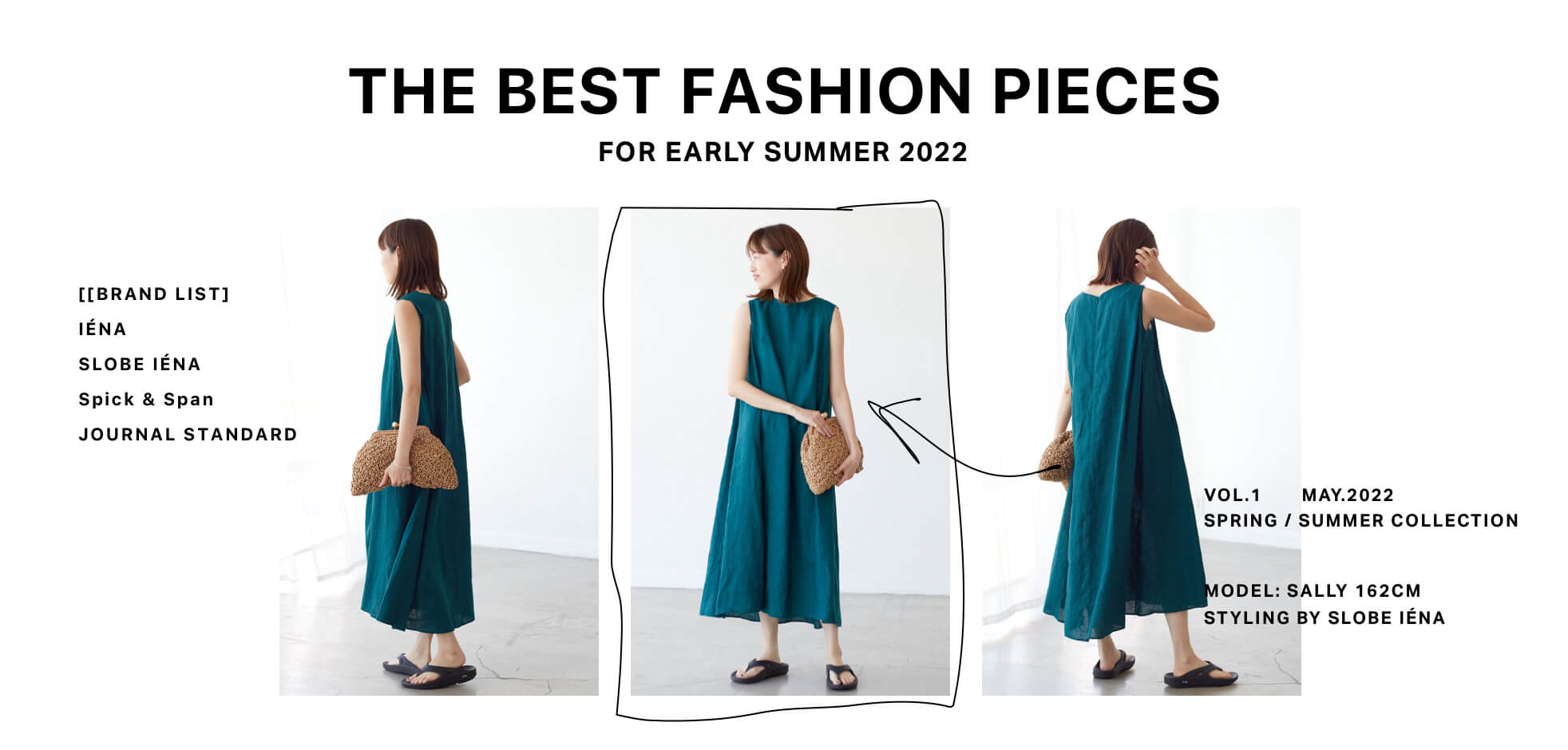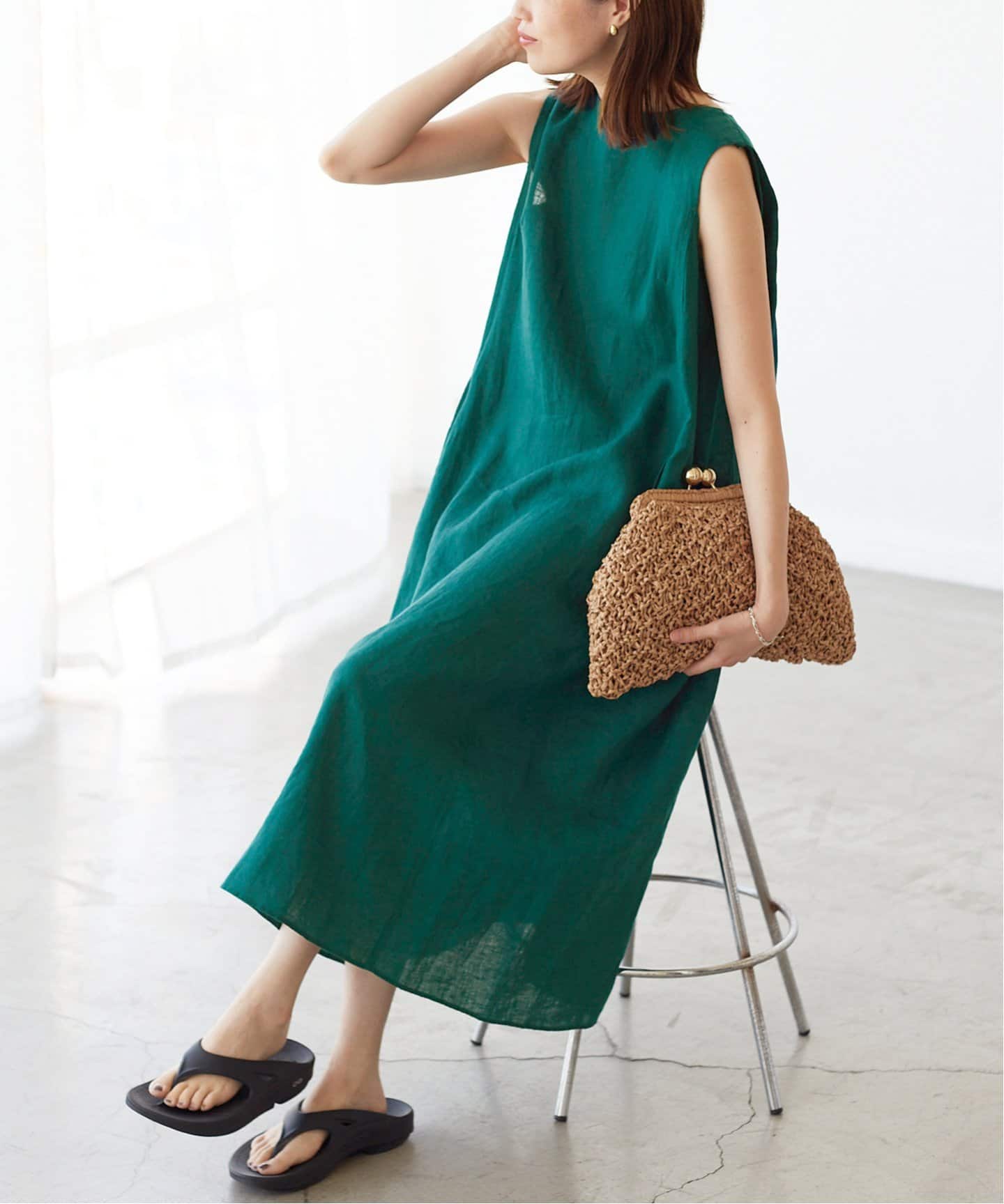 華やかで今っぽいリラクシーSLOBE IENAの1枚でサマになるノースリーブワンピースは、今から真夏までフル活用できる使い勝手の良いデザイン。トレンドムードたっぷりのグリーンも◎。