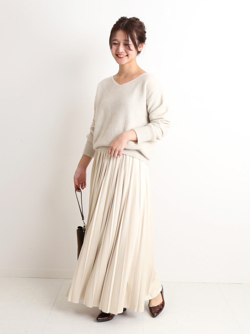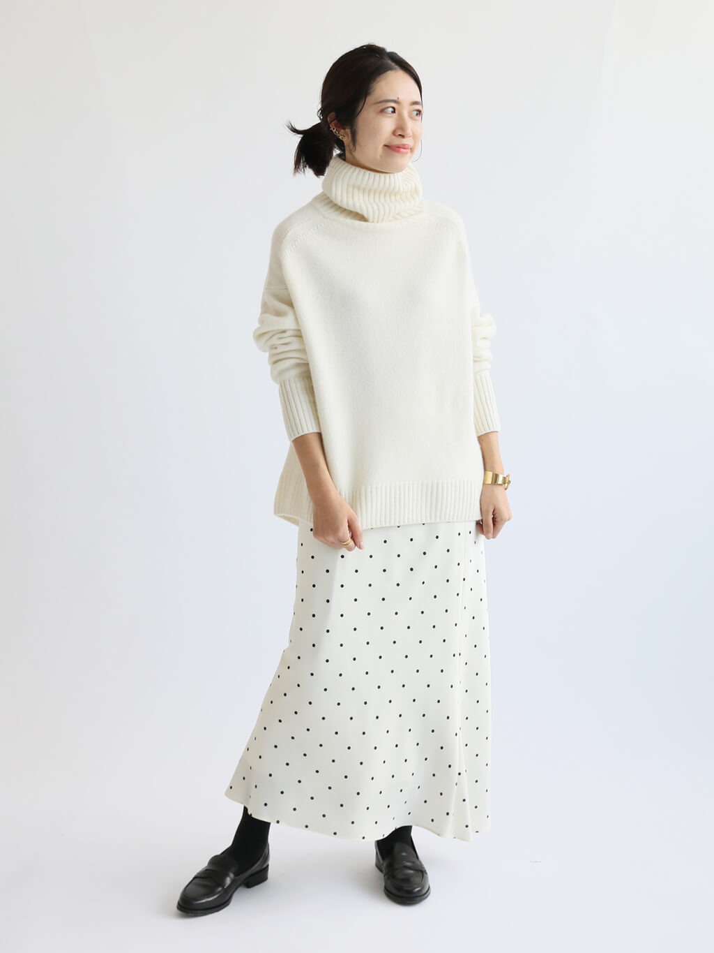 オンにもオフにもOK。ポイントは、ニットとのバランス。