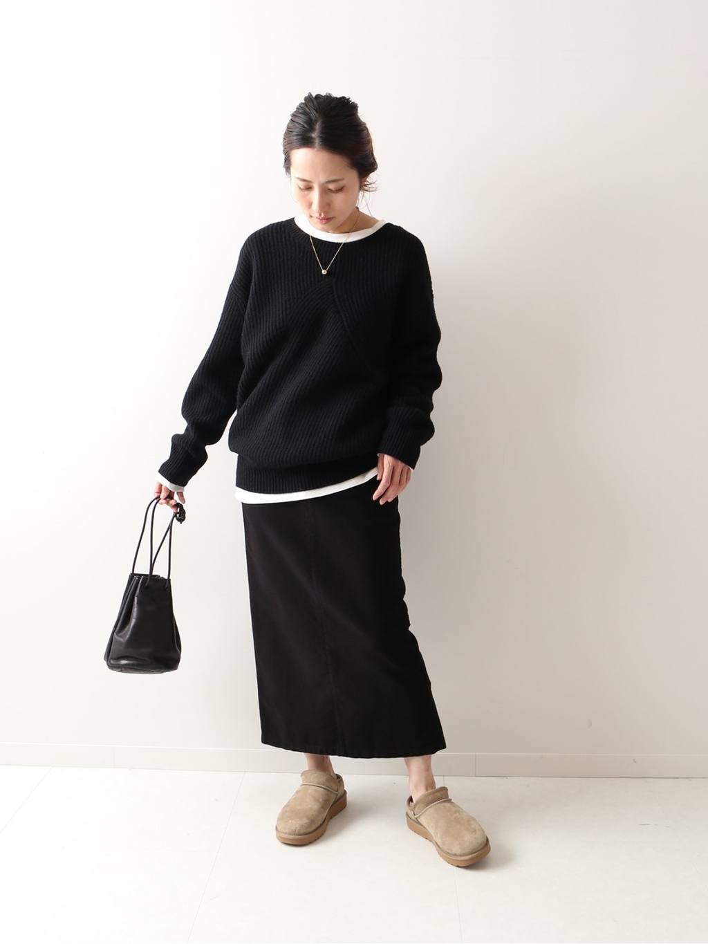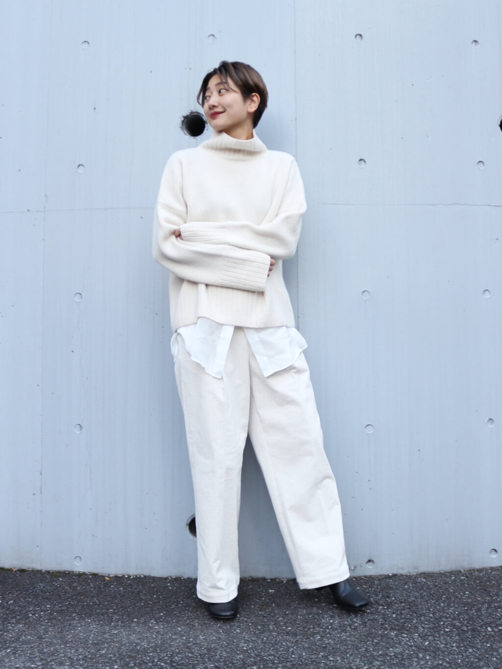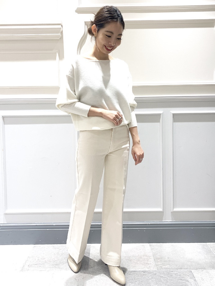 ボートネックで少しだけ肌を見せて抜け感を差し込んだり、