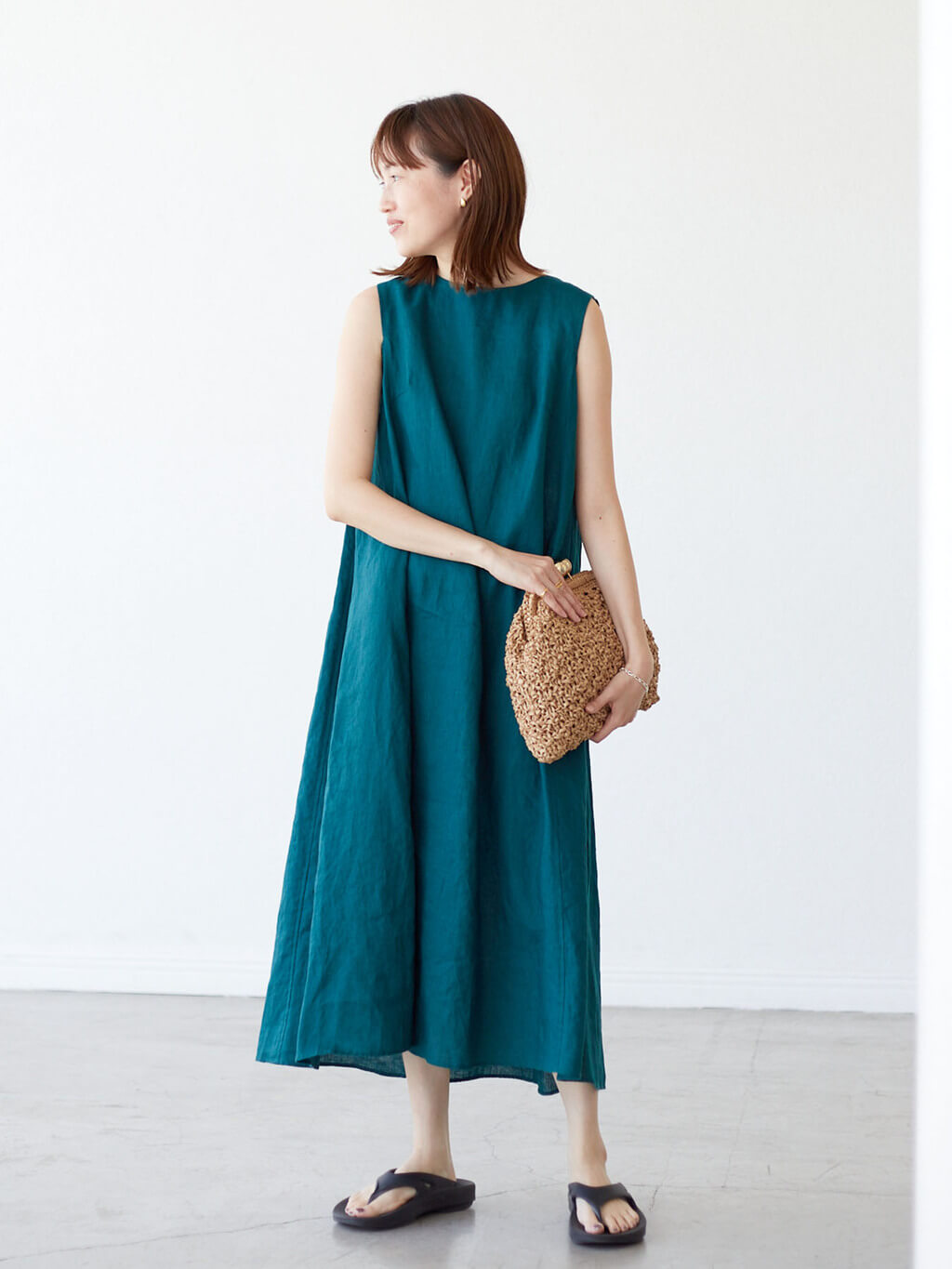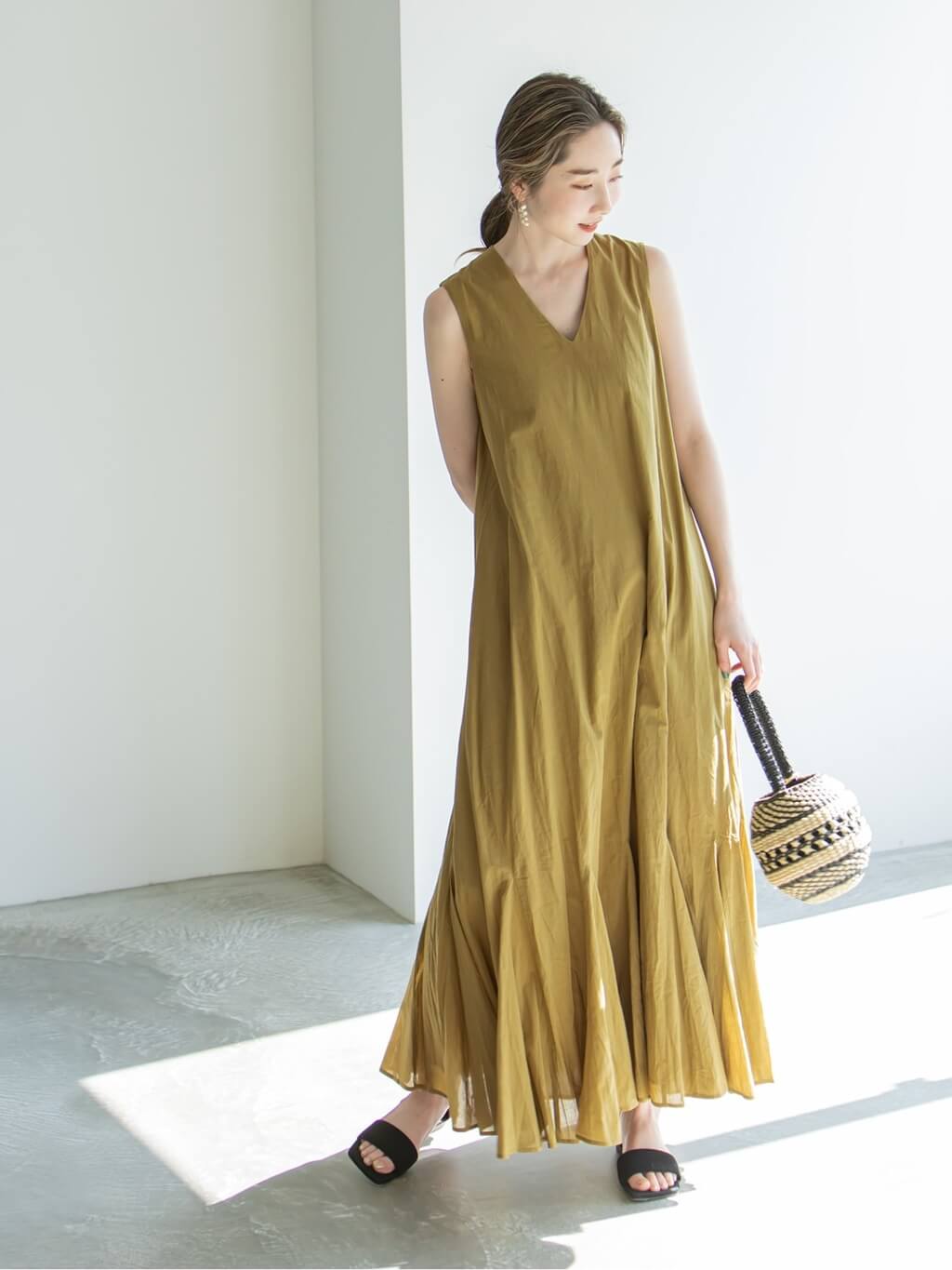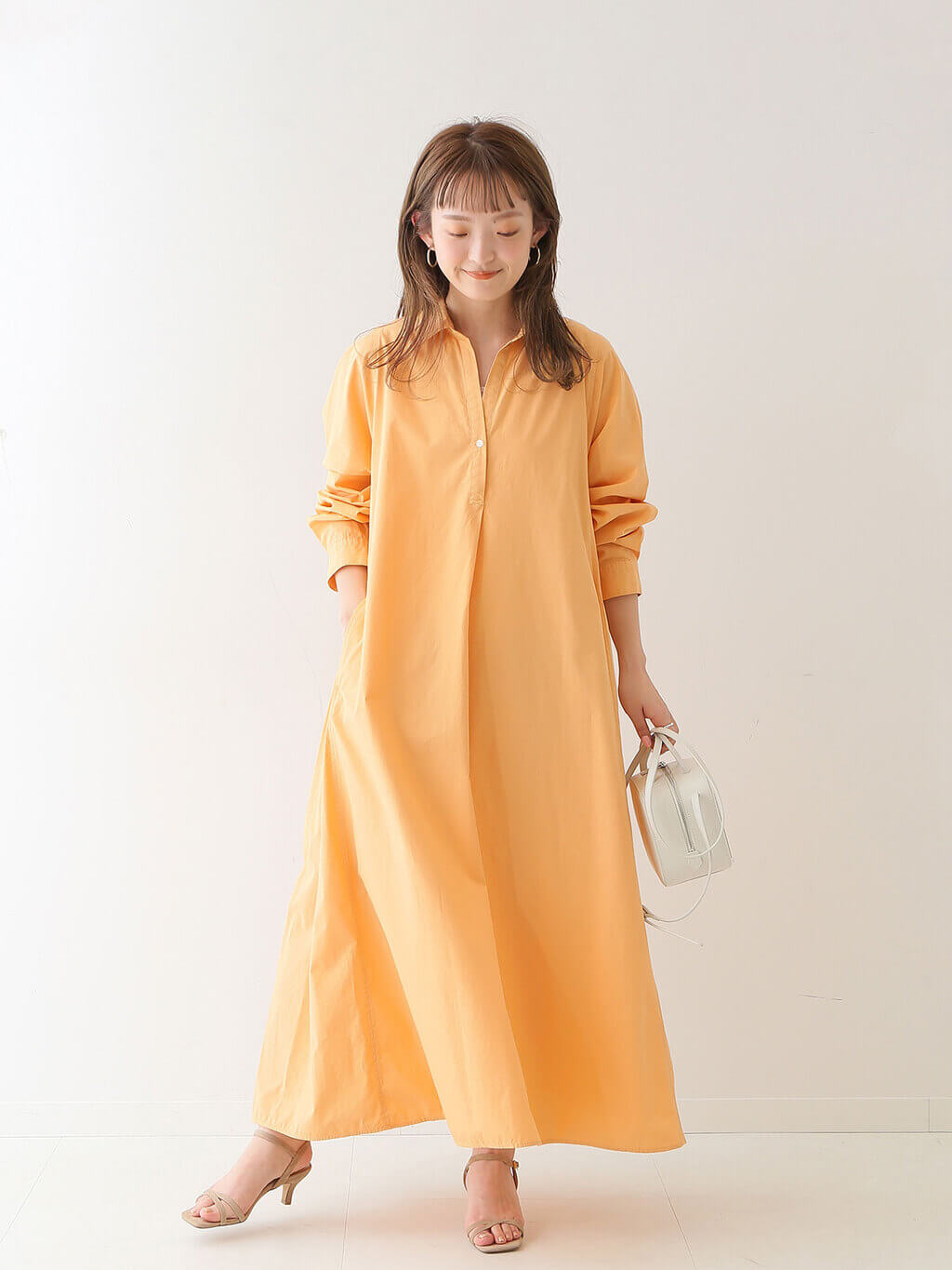 今年らしくサマ見えするカラーワンピが主役楽ちんで軽やか、さらに今年らしさも満点なオレンジやグリーンのカラーワンピースが気分。潔く1枚で着こなして、カゴバッグやスポサンで遊び心を加えて。