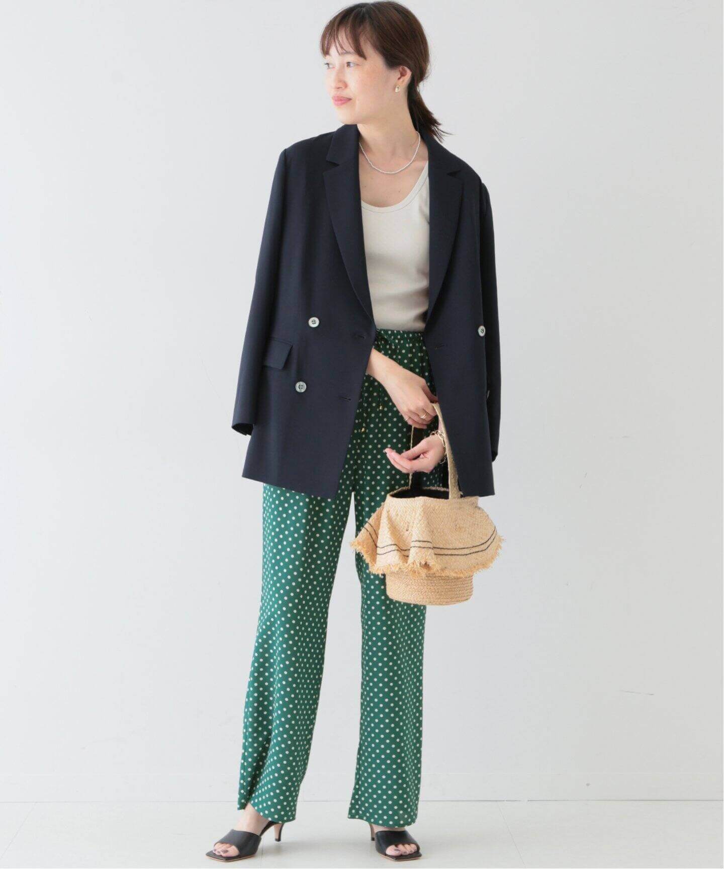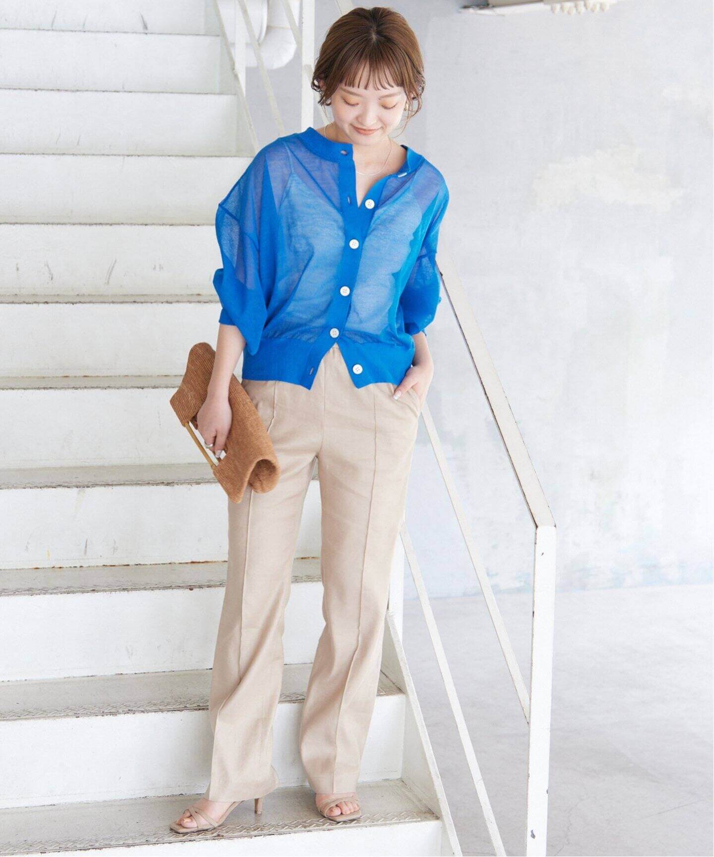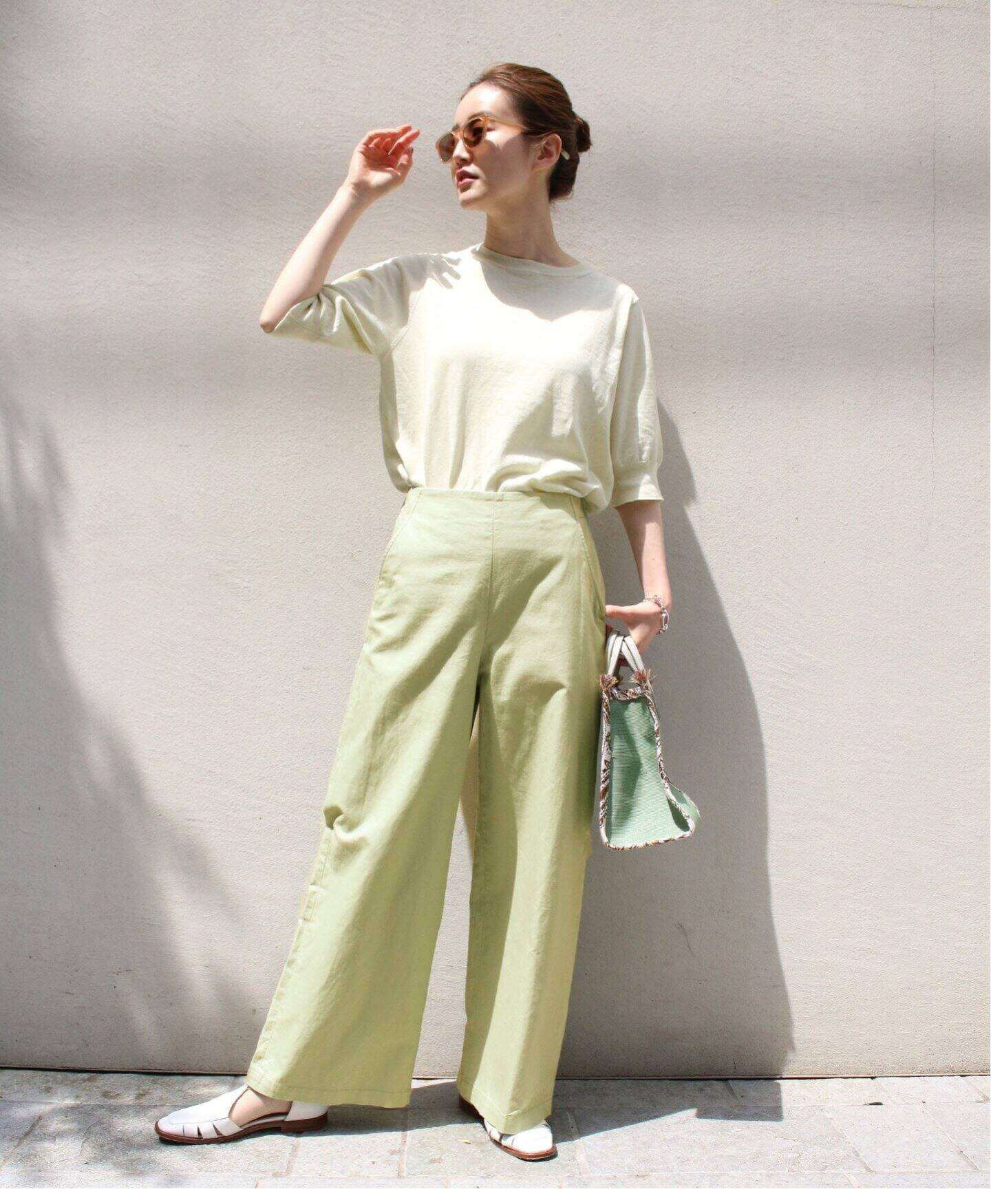 清涼アイテムで好印象をゲットこれからの季節にぴったりなSLOBE IENAのシアーカーディガンは、ぽわんと広がる袖がキャッチー。ワンツーコーデが爽やかに洒落るグリーンのドットパンツも重宝しそう。