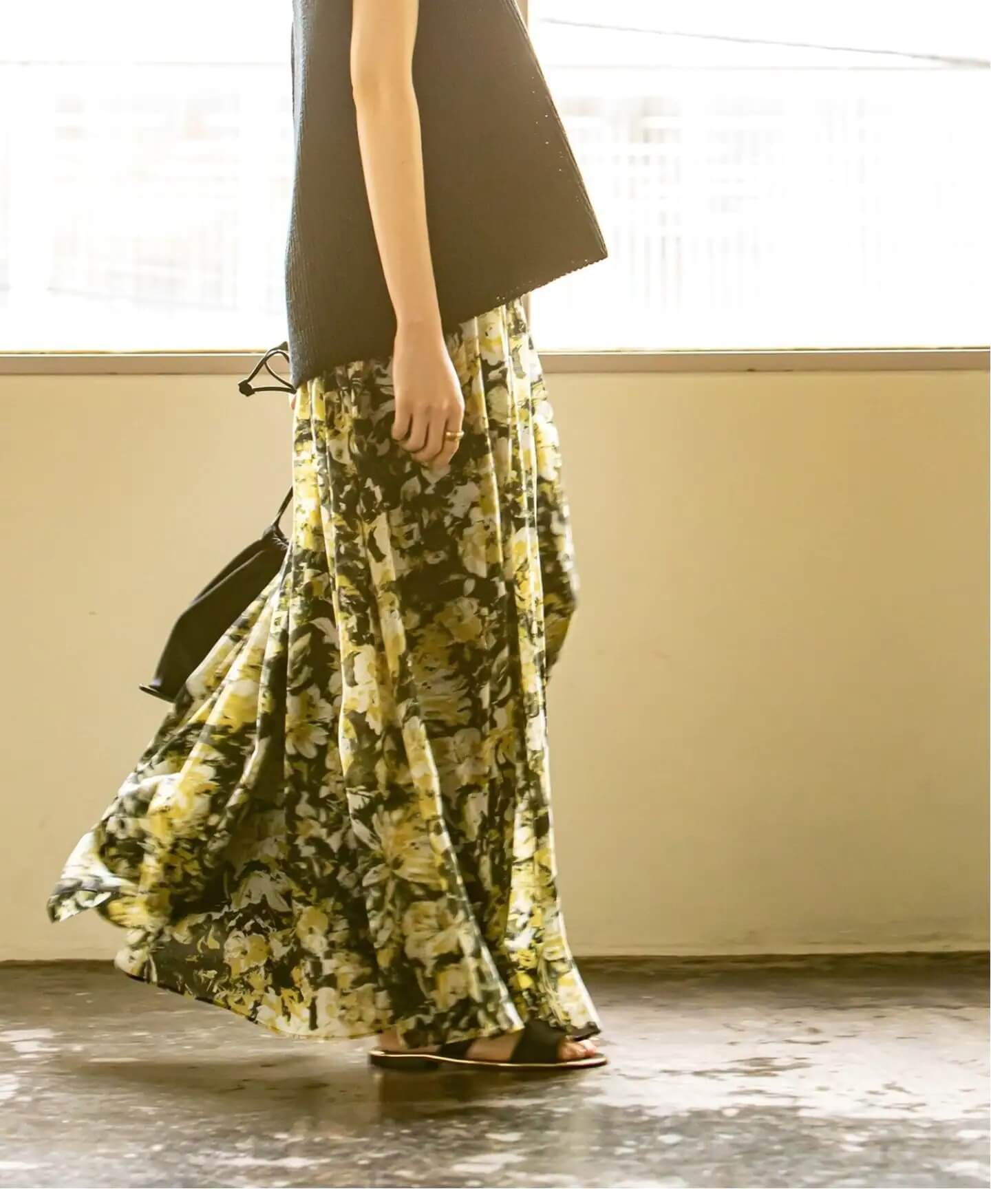 夏らしく涼しげにまとえる花柄スカートオーガンジーに花柄をのせたNOBLEのスカートは、マキシ丈でもすっきり涼しげな印象に。IENAからは、ドット×花柄のクラシカルなロングスカートがお目見え。