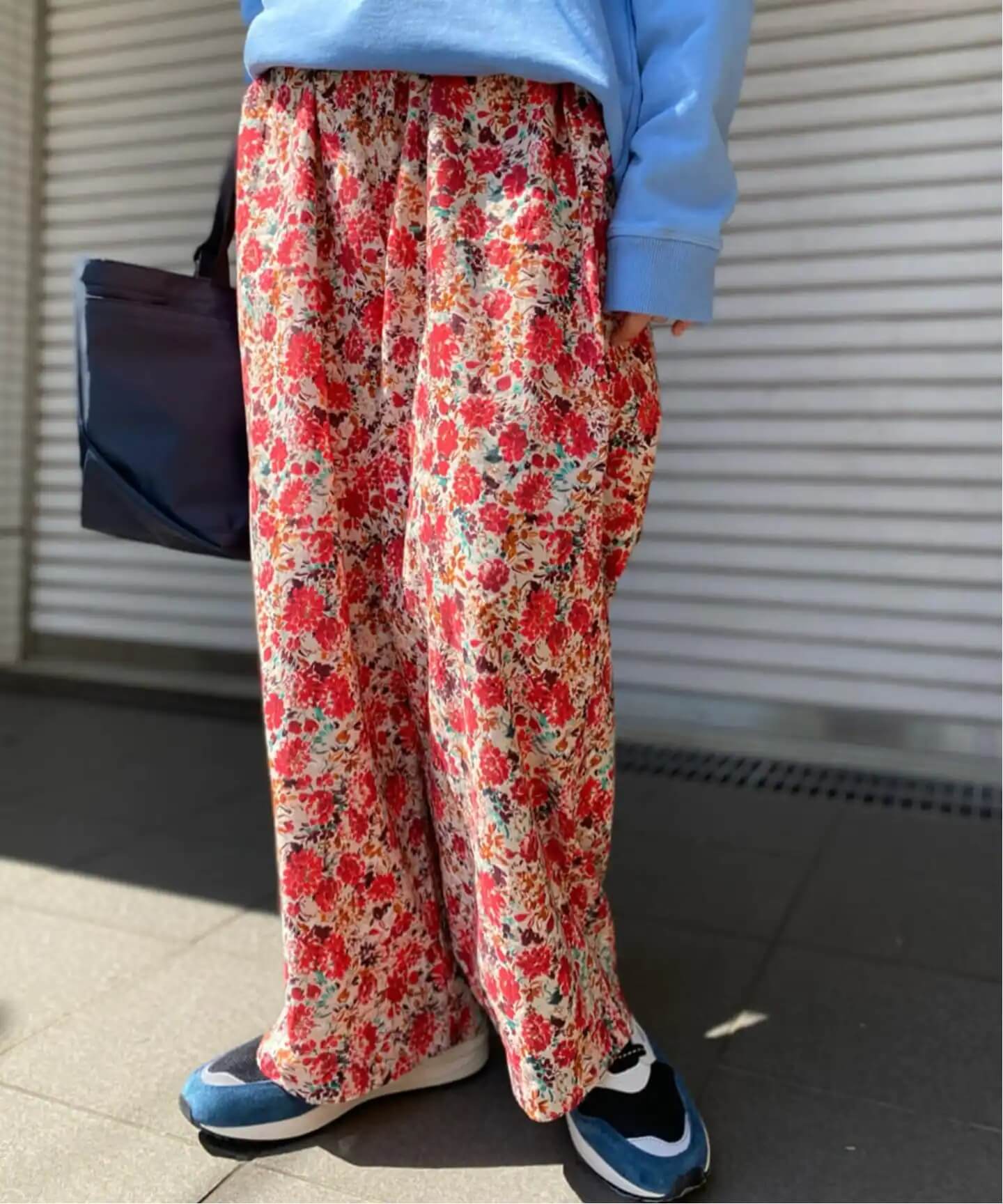 イージーな着心地が叶うパンツ大きな花柄を大胆にプリントしたIENAのモダンなパンツや、luxeのヴィンテージライクな花柄が目を引くワイドパンツなど。華やかでいて楽ちんに着られるのが嬉しいポイント。