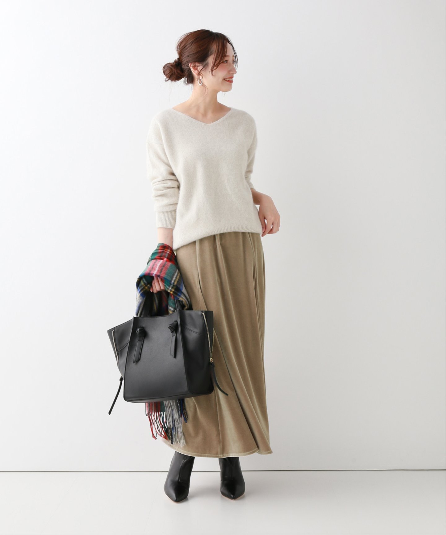 ベロア素材がコンフォートなカジュアルを格上げ
