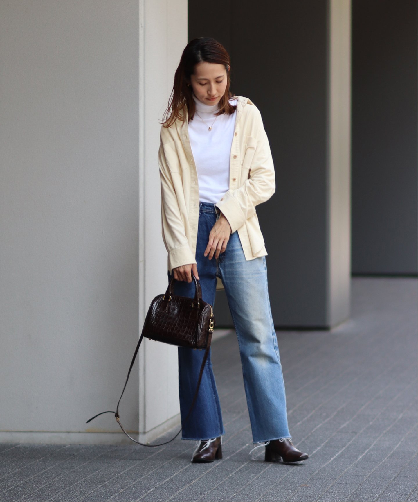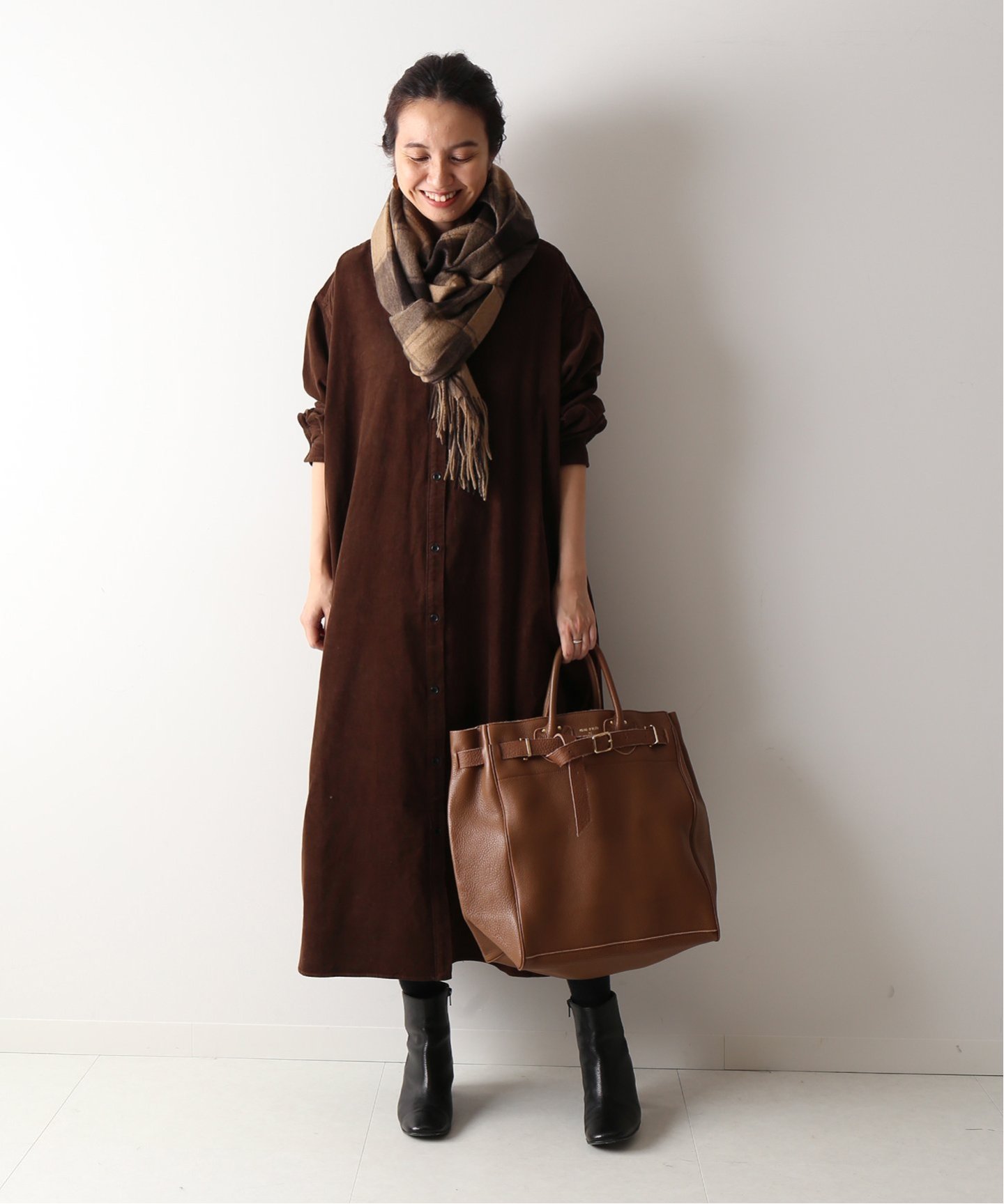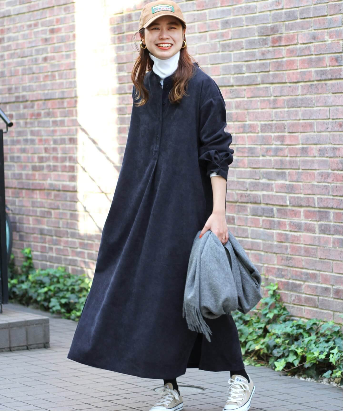 冬にシャツワンピースをまとうなら、