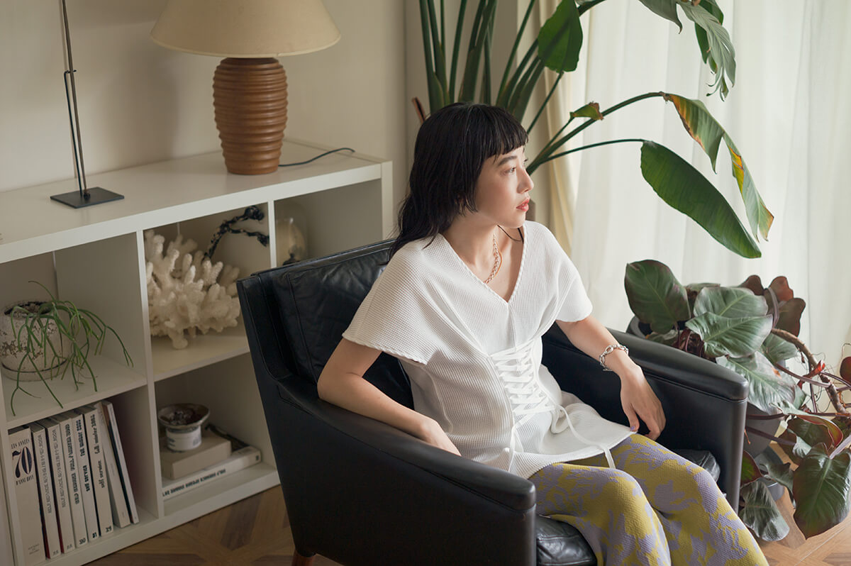 今回はデザイナーの古茂田綾乃さんに、コラボアイテムをつかった1週間コーディネートを披露していただきました。Sunday