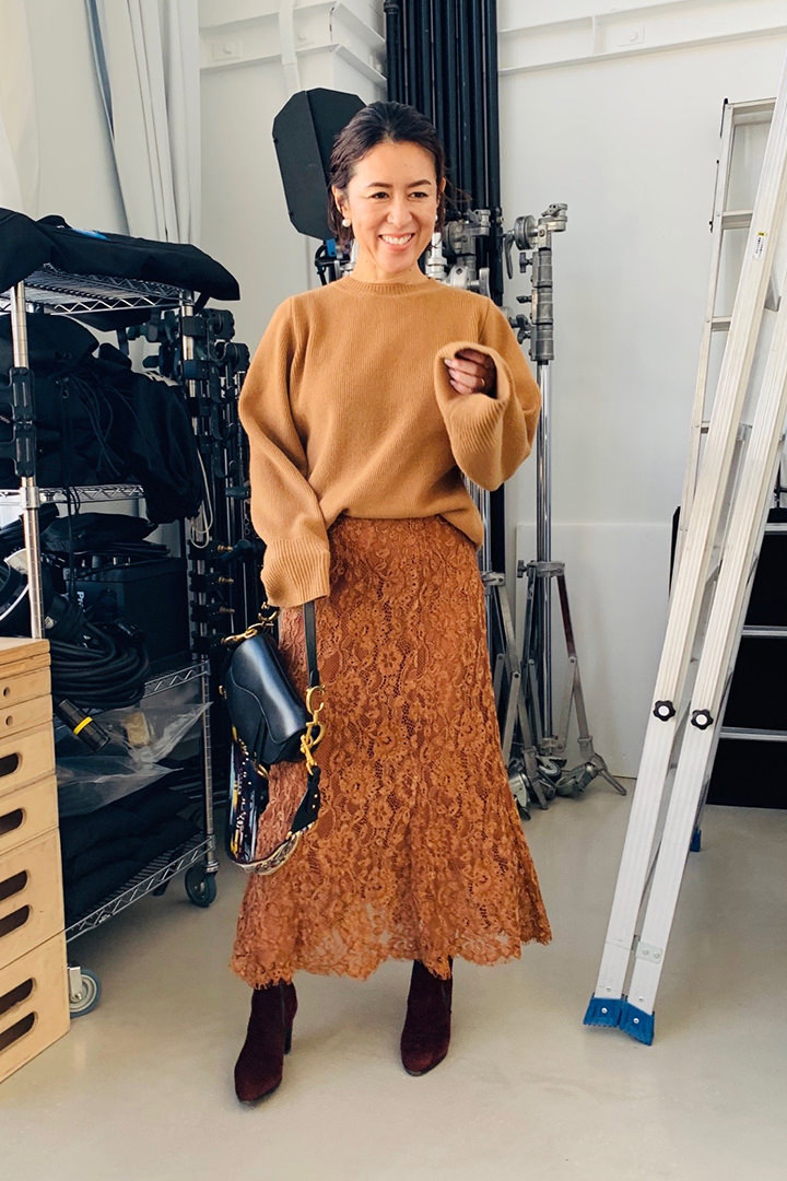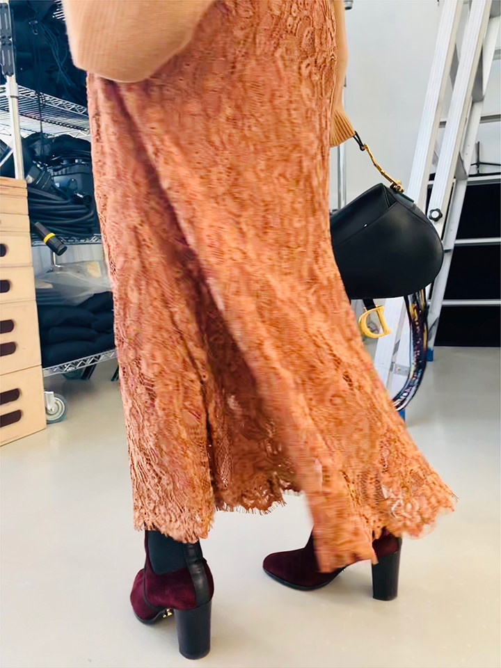 - 最近ヘビロテしていますが、このスカート良い(笑)‼ 素材のクオリティはもちろん、丈がしっかりあるのと、タイトすぎないシルエットで、合わせる靴を選ばない!さらにレース。タイツとの相性も◎です!