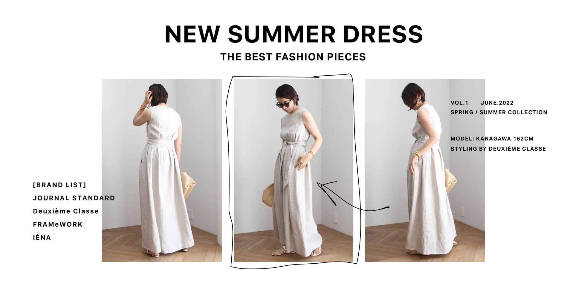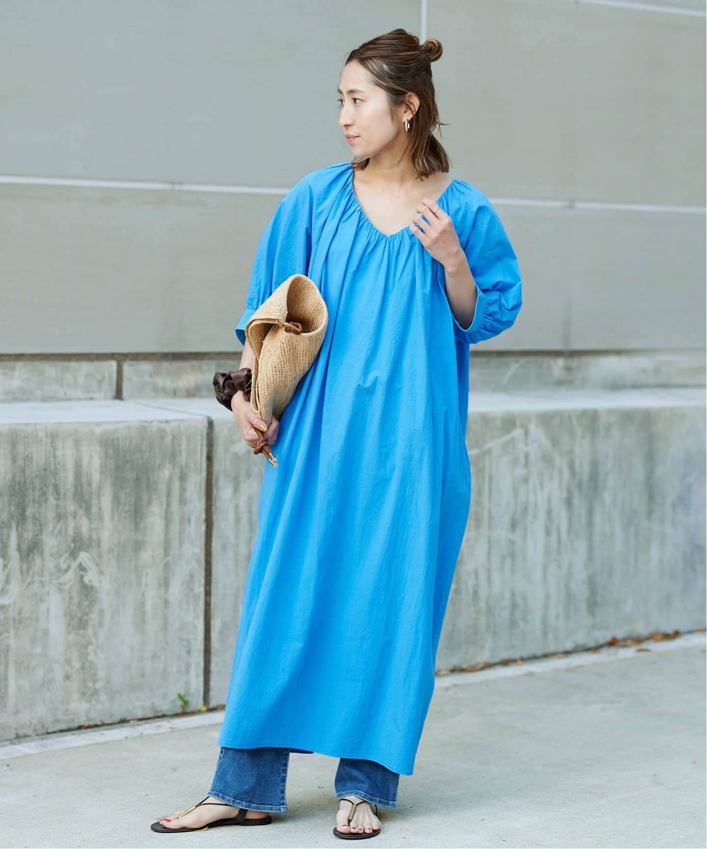 デイリーに着回せるワンピースシンプルでいて華やかさやこなれ感漂うディテールが光るJOURNAL STANDARD。夏空に映える鮮やかなブルーワンピースは肩口のギャザーがこなれポイント。