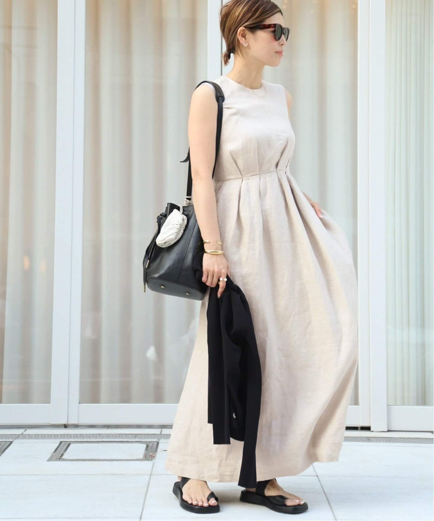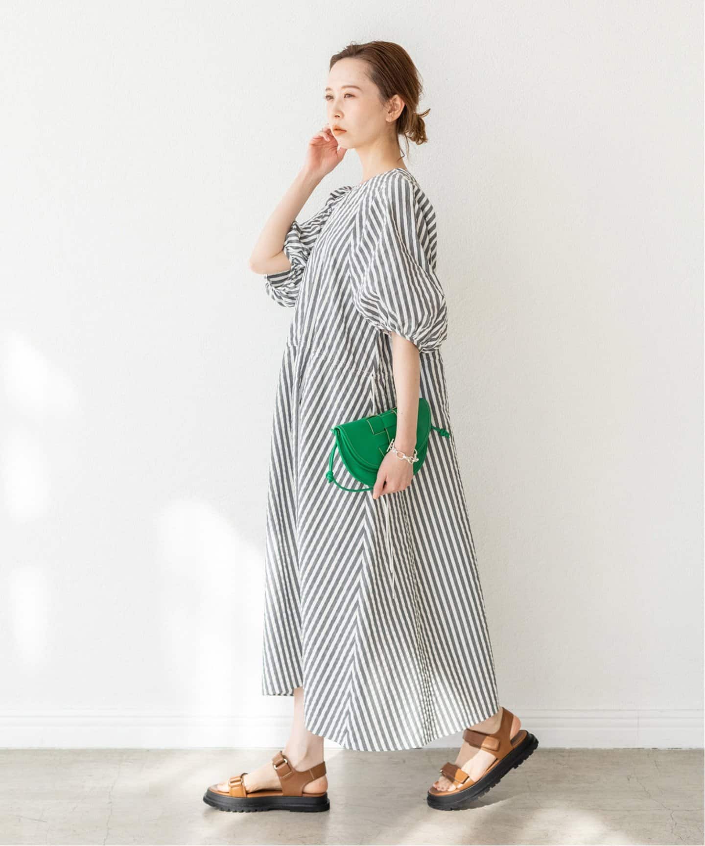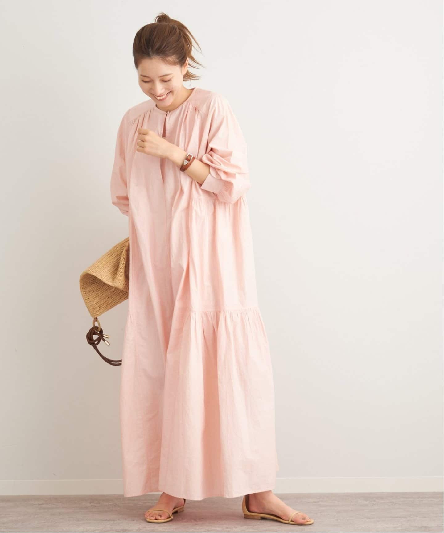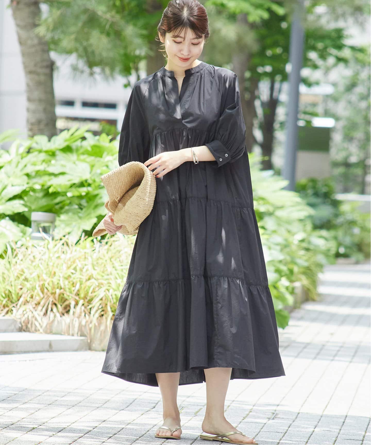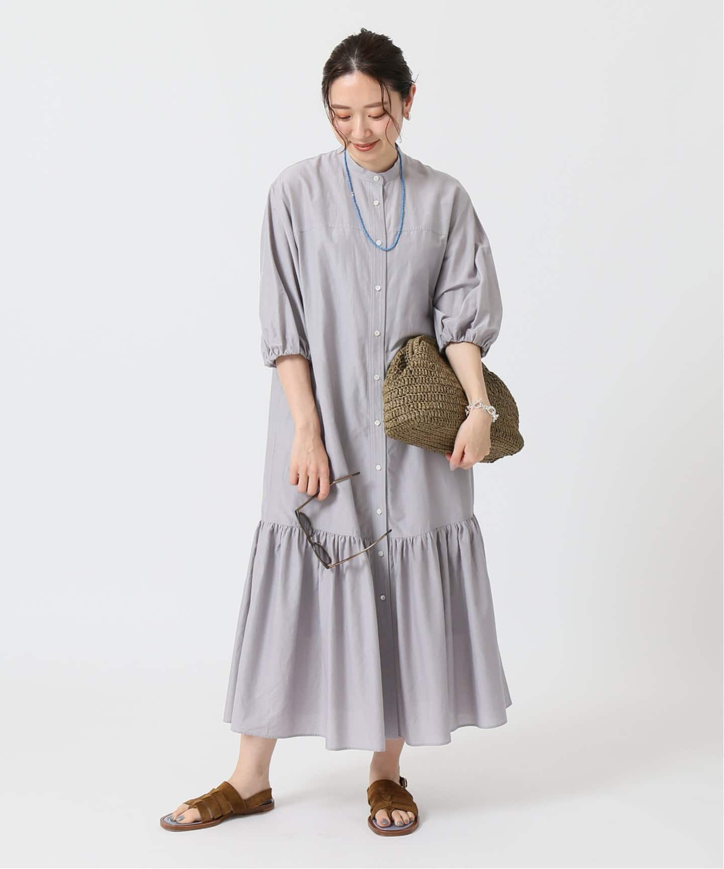 オン・オフOKな上品ワンピース女性らしいティアードや盛り袖を搭載しつつ、ノーカラーのIラインシルエットが知的なIENAのシャツワンピース。着回し力が高く、オン・オフ兼用で活躍しそう。