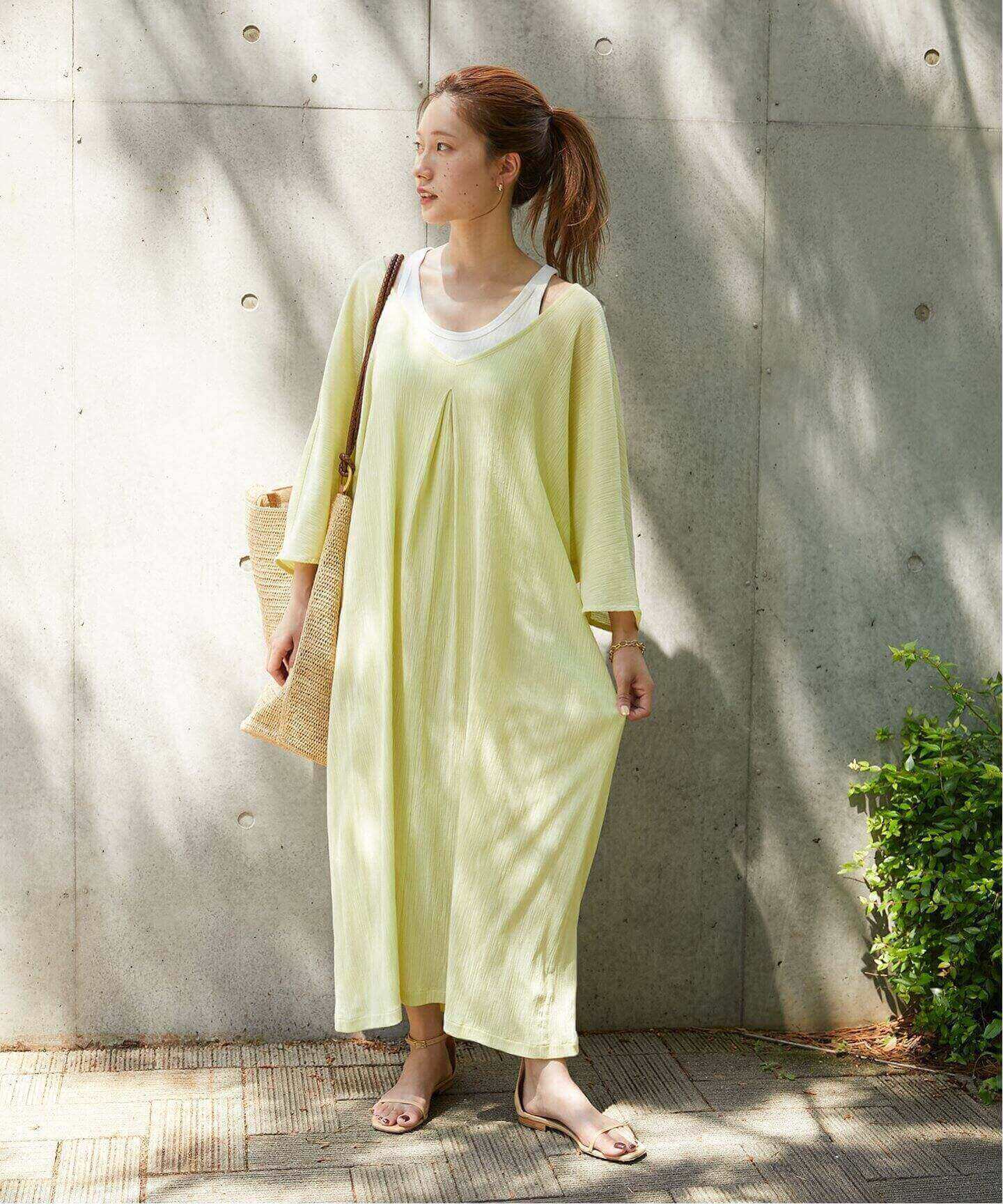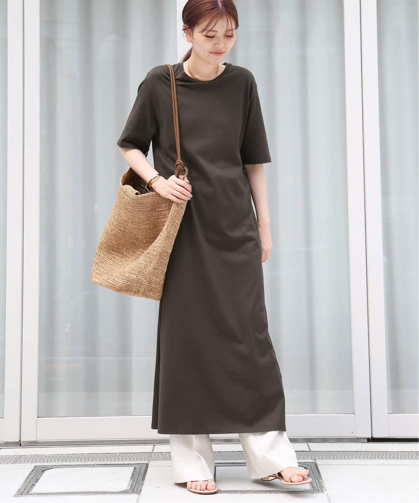 リラクシーなカラーワンピースFRAMeWORKのおすすめは、照れずにデイリーに着られるリラックスシルエットのカラーワンピース。カフタンワンピースはニュアンスカラーで都会的にブラッシュアップ。