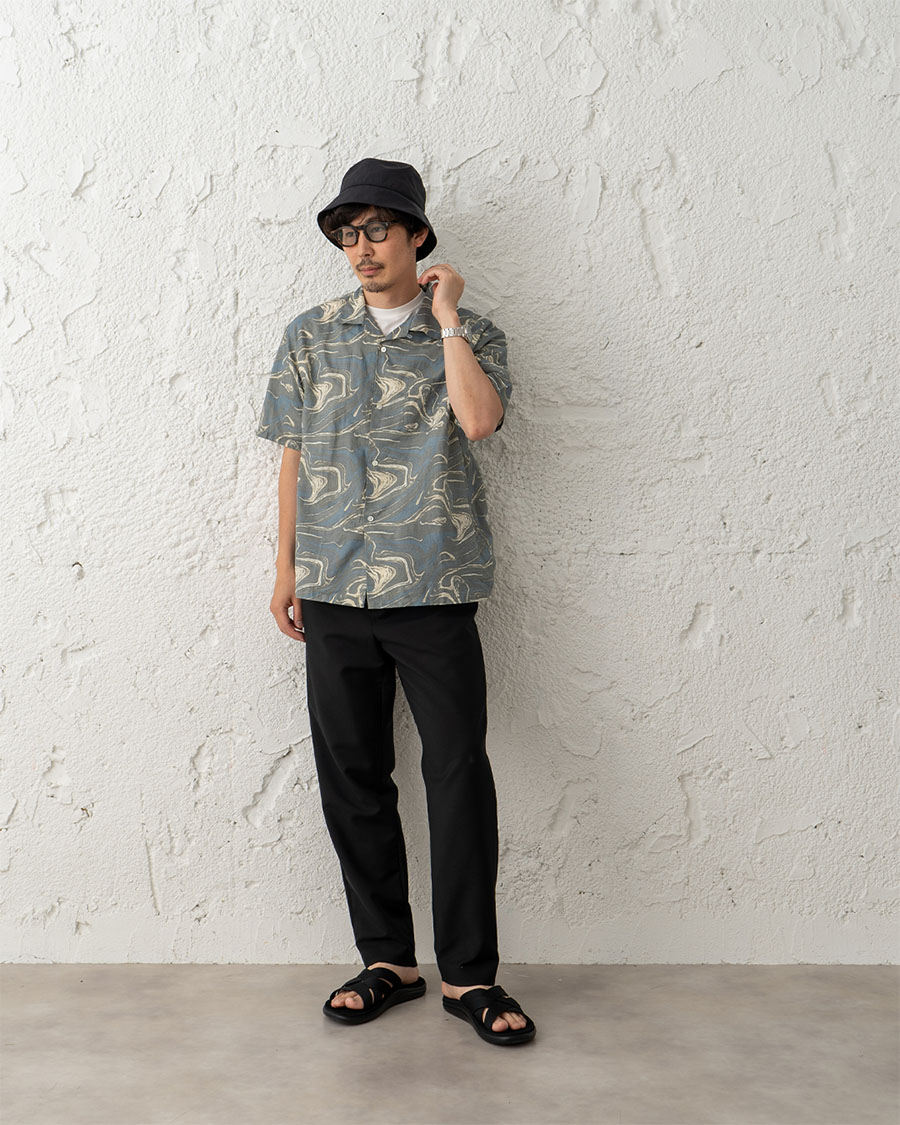 レーヨンのシャツも良いけれど、今年はくったりしたコットンシャツが良いと思いシャツを購入。グレーかブラックか迷った結果70'sっぽい雰囲気が決め手となりグレーに。インド製のゆるい感じが良い!