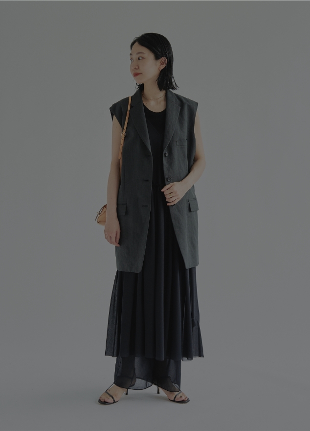 7月のはじまり。 暑い日差しの下でも涼しげな女性に憧れる。 日焼けした肌を白く見せてくれる “黒” の力をかりて 凛としたオトナな女性を目指して。 どうせならいま買って秋まで着まわせる 長く愛せるモノを選ぼう。 STYLEo1.とろみのある、光沢素材のブラウスを涼し気に見せるには、リネンベルトツキパンツで夏素材をプラス。サンダルで肌感を出して女らしく、スカーフをアクセントに。 STYLEo2.ケープブラウスのアレンジスタイル。レディーにベルトマークをして、ショートパンツでアクティブに。ローファーで外して、小物はブラウンでまとめて。 STYLEo3.きれいめブラウスを思い切ってカジュアルダウン。デニムに合わせるだけで、デイリーな着こなしに。秋口には、トレンドのカレッジニットを肩がけするのがポイント。 STYLEo1.この秋トレンドのツイード素材を先取り。大きなセーラーカラーが肩にかかり、二の腕もすっきり見せてくれる。夏は爽やかにシアーパンツで涼しく過ごして。 STYLEo2.モノトーンのツイード素材だから、カラーパンツとも相性抜群。華やかで女性らしくカジュアルに。帽子やシューズはブラックで統一感を。 STYLEo3.まだまだ暑い初秋は、ノースリーブでも小物を変えるだけで新鮮に。ブーツやバッグ、ボトムスの素材を変えるだけで、秋色に様変わり。 STYLEo1.キャミドレスを大人っぽく辛口に仕上げたいときは、流行りのロングジレをレイヤード。それだけで都会的な、かっちりした印象になるから、気持ちを引き締めたい日におすすめ。 STYLEo2.シアー感を活かして、インナーはすべて白に。ドレスの輪郭が映えて、上品かつレディーなスタイリングに。全体をモノトーンでまとめたら、足元はレオパードで遊び心を。 STYLEo3.秋が深まればニットを着てスカート使いに。同じアイテムと思えないほど、合わせるアイテムで様変わりする。レイヤード次第でオールシーズン対応できる、優秀アイテムに。 @hardynoir.jpONLINE SHOPSHOP LIST HARDY NOIR | SUMMER SNAP 表情が変わる、 さまざまな「黒」のカタチ。 HARDY NOIR × ベイクルーズプレスがご紹介! HARDY NOIR ×ブランドMIXのスタイリングHOW TO BLACK WEARING BORDERLESS | 2022 SPRING COLLECTION BLACK WEARING BORDERLESS | 2022 SPRING COLLECTION HARDY NOIRカッセンデシンケープブラウス¥18,700(税込)HARDY NOIRリネンベルトツキパンツ¥29,700(税込)NOBLE《追加》【BRENTA】ストラップヒールサンダル¥46,200(税込)HARDY NOIRカッセンデシンケープブラウス¥18,700(税込)NOBLEトラペーズラインショートパンツ¥16,500(税込)Spick and Span【MAISON BOINET/メゾンボワネ】 アジャスターベルト¥23,100(税込)Spick and Span【GIANNI NOTARO/ジャン二ノターロ】ショルダーバッグ¥19,800(税込)NOBLE《追加》【FABIO RUSCONI】ローファー◆¥26,400(税込)HARDY NOIRカッセンデシンケープブラウス¥18,700(税込)Spick and Span【upper hights】別注THE BIRKIN◆¥25,300(税込)Spick and Span【Oldderby Knitwear】別注クリケットロングスリーブプルオーバー¥19,580(税込)HARDY NOIR12mmボールネックレス¥15,400(税込)HARDY NOIRツイードセーラーブラウス¥23,100(税込)HARDY NOIRトリコットオーガンジーシースルーパンツ¥19,800(税込)NOBLE《追加》【BRENTA】ストラップヒールサンダル¥46,200(税込)Lilasタングルチェーン38cmネックレス K10¥58,300(税込)HARDY NOIRツイードセーラーブラウス¥23,100(税込)Spick and Span【DECKE/デッケ】 バケツガタショルダーBAG¥33,000(税込)NOBLE《追加》【BRENTA】ストラップヒールサンダル¥46,200(税込)HARDY NOIRツイードセーラーブラウス¥23,100(税込)Spick and Span≪一部店舗+WEB限定≫【PIPPICHIC / ピッピシック】 ロングブーツ¥68,200(税込)NOBLE【a point】エコファーチェーンバッグ¥20,900(税込)Lilasタングルチェーン38cmネックレス K10¥58,300(税込)HARDY NOIRオーガンジートリコットキャミドレス¥19,800(税込)HARDY NOIRリネンロングジレ:ベスト¥34,100(税込)HARDY NOIRトリコットオーガンジーシースルーパンツ¥19,800(税込)Spick and Span【VICE VERSA/バイス ベルサ】チェーンショルダー¥12,100(税込)NOBLE《追加》【BRENTA】ストラップヒールサンダル¥46,200(税込)HARDY NOIRオーガンジートリコットキャミドレス¥19,800(税込)NOBLEシアークレープジャージロングTシャツ¥9,900(税込)NOBLEファジーリネンサイドスリットフレアパンツ¥16,500(税込)Spick and Span【MILOS/ミロス】 ハンドバッグ¥20,900(税込)HARDY NOIRオーガンジートリコットキャミドレス¥19,800(税込)NOBLE《追加》Vネックドルマンカーディガン¥19,800(税込)HARDY NOIR【PALANCO/パランコ】 ワンストラップシューズ¥43,780(税込)