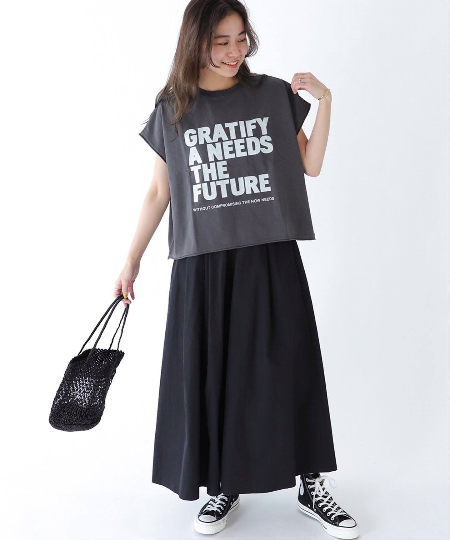 クールダウンラフでこなれた大人カジュアルに最適なのが、グレーのロゴTシャツ。GOLDEN GOOSEのヴィンテージライクでさりげない主張のロゴなら切れ味良く、洗練された印象に。