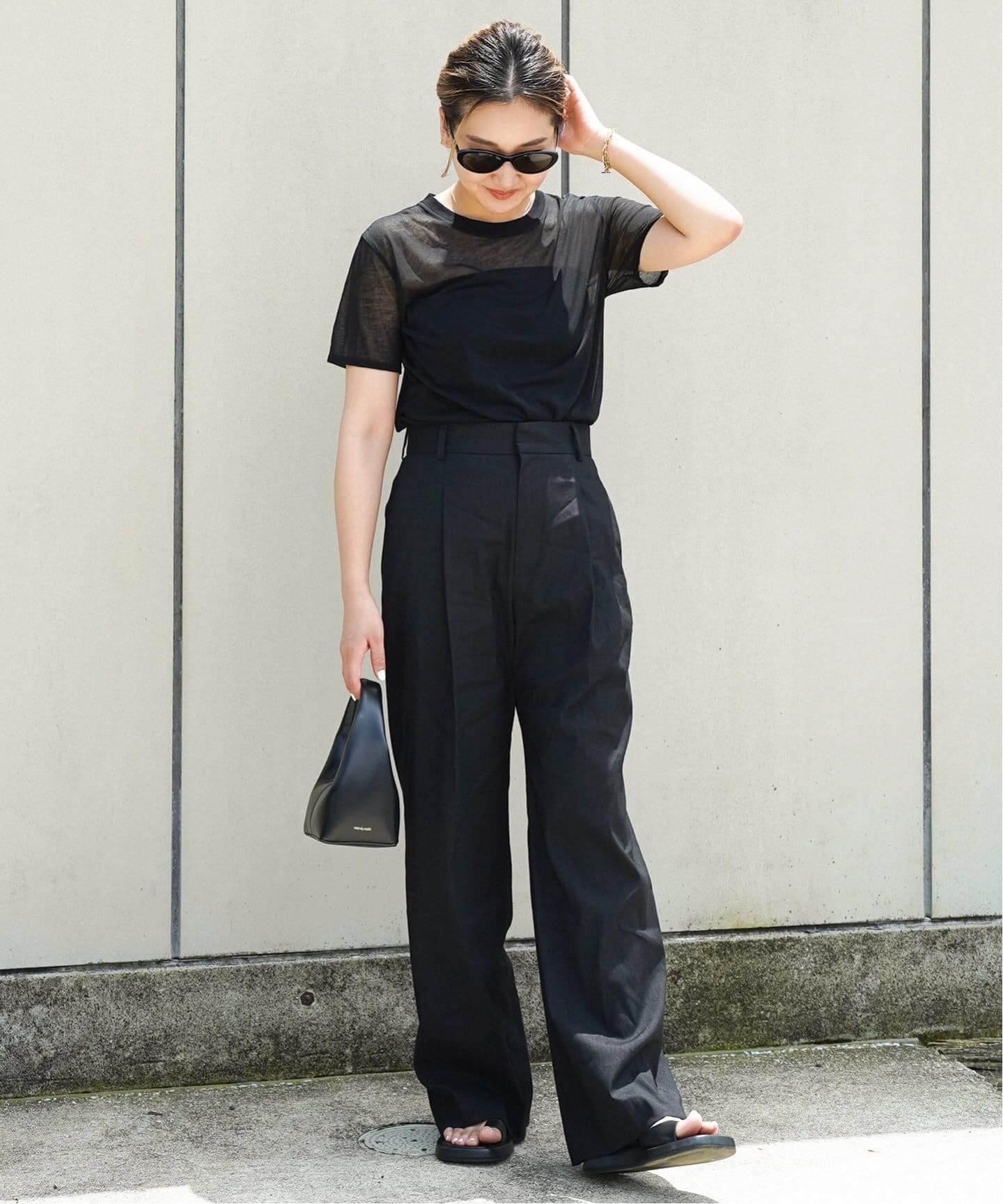 夏らしい軽快な黒Tシャツ夏でも黒が着たい!そんな時はDeuxieme ClasseのシアーTシャツをリコメンド。透け感が夏らしい涼しさを漂わせつつ、リュクスなムードも漂うブランドらしい一枚。