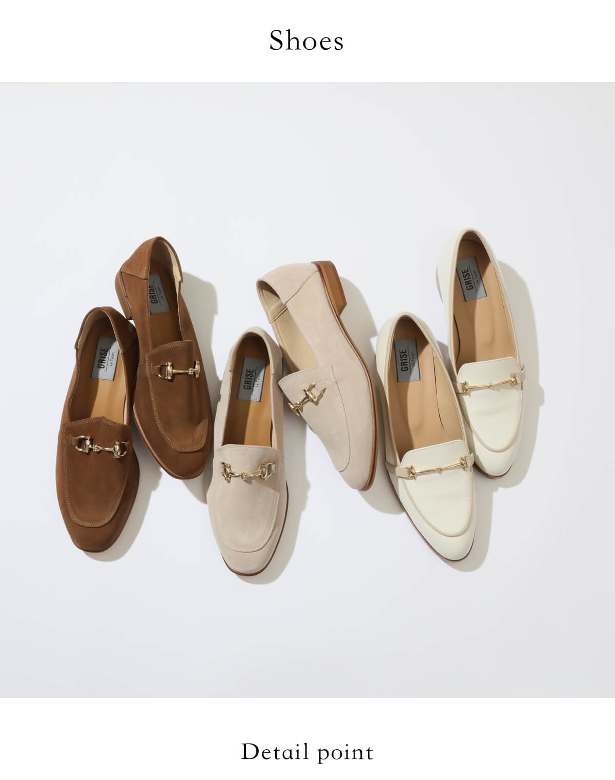 オフホワイト~ブラウンカラーで足元までシックにまとめて。