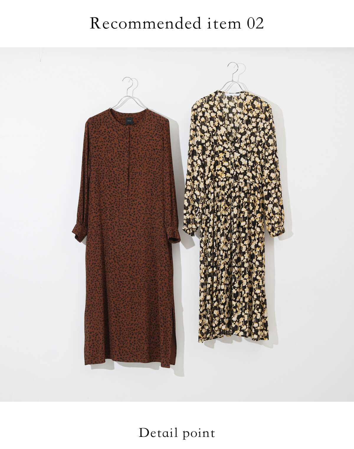 フラワー柄の主役級ワンピと、黒い小花のシックなワンピ。