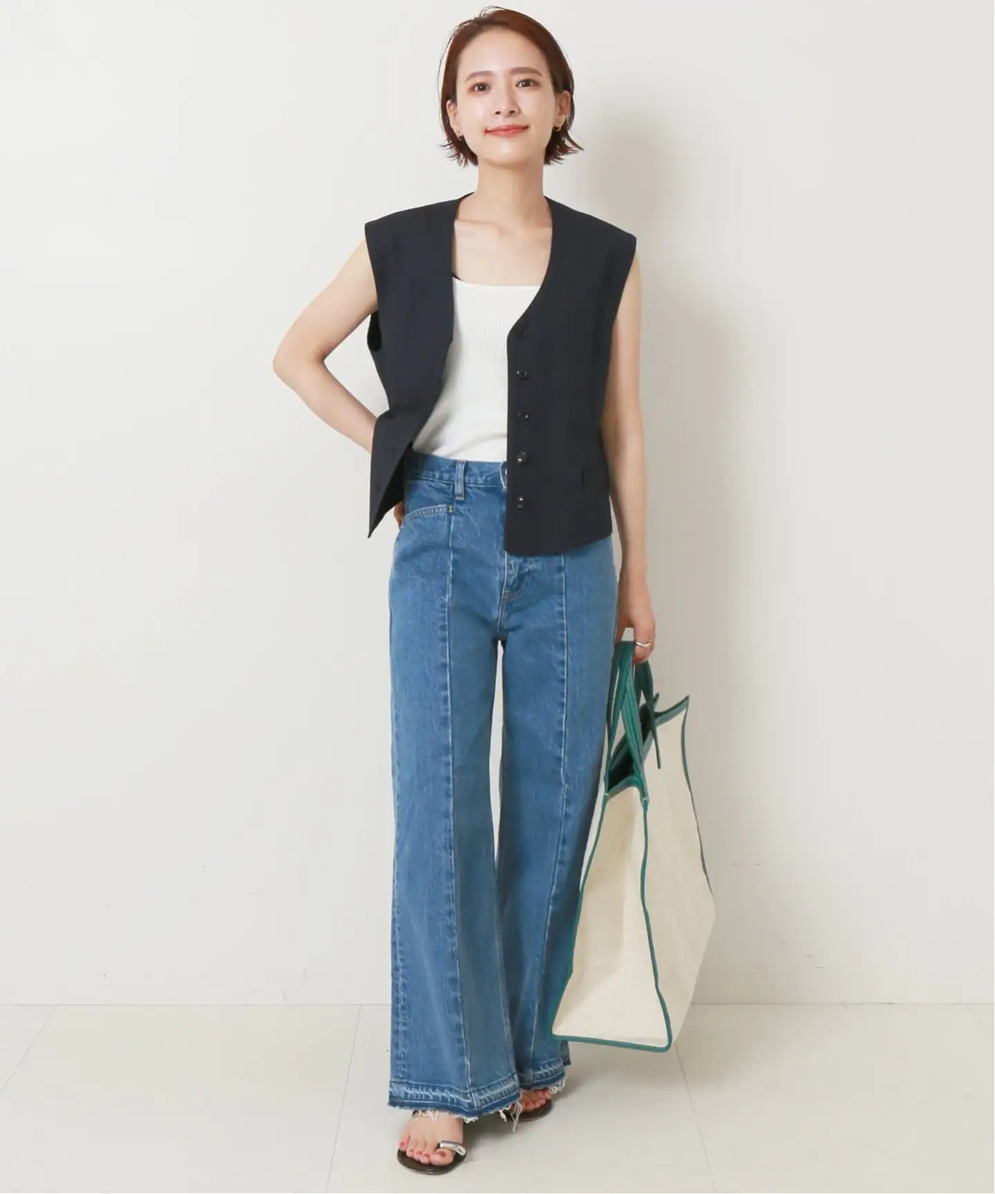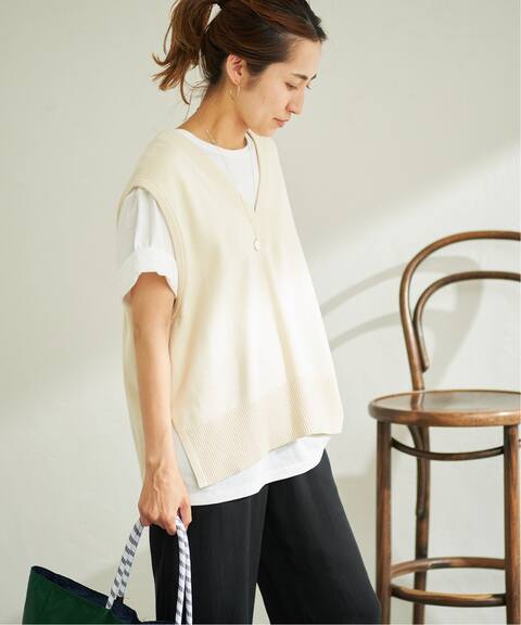 再注目のベストは深めVネックを狙ってまずチェックしたいのがベスト。インナーを効果的に見せつつスタイリッシュにキマる、深めなVネックのロング丈が今年っぽい。