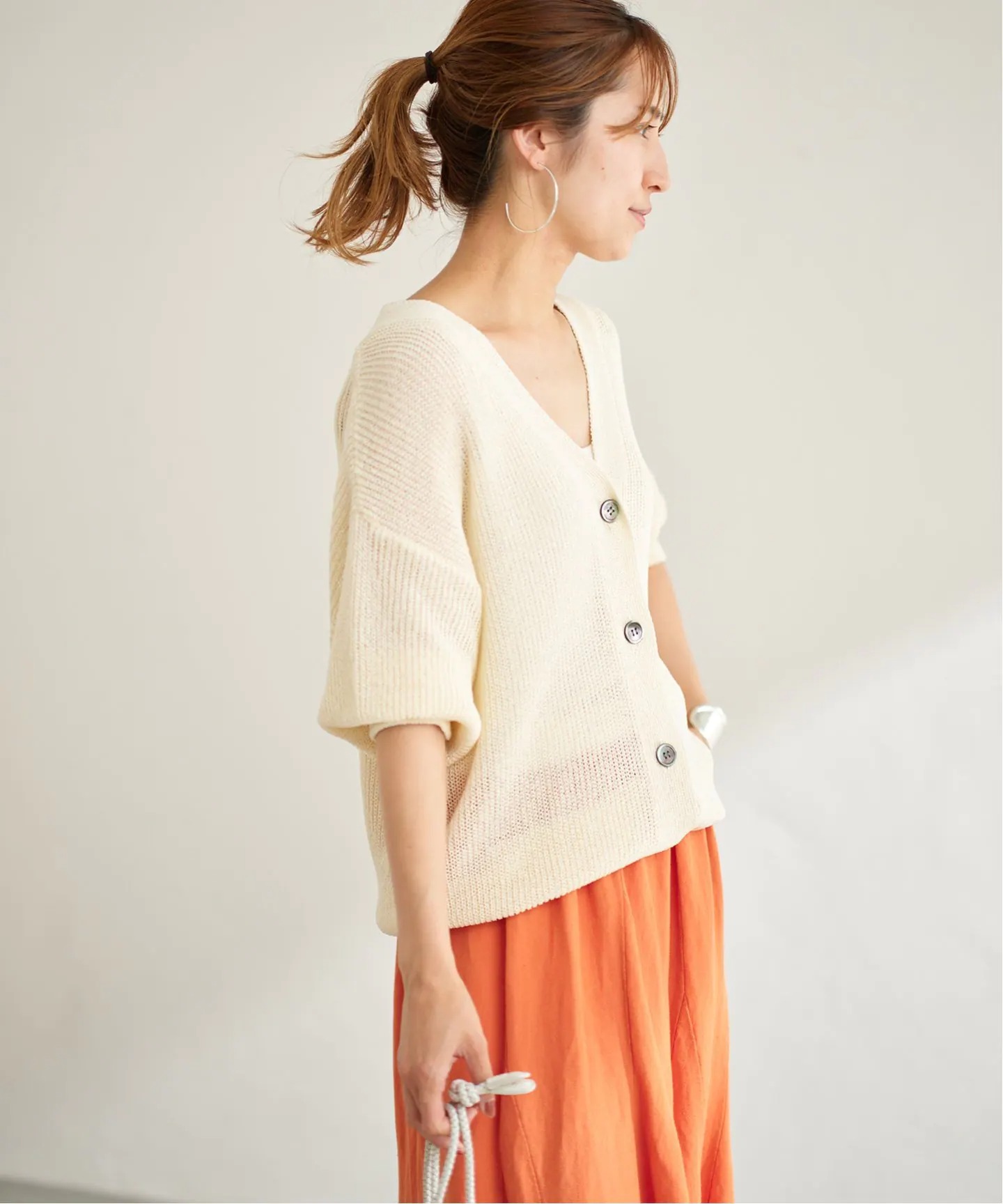 ショートカーディガンサッと羽織りやすく、トレンドムード高まるクロップド丈カーディガン。ハイウエストやワイドボトムスとグッドバランス。ボタンを閉めてトップス風に着こなすのも素敵。