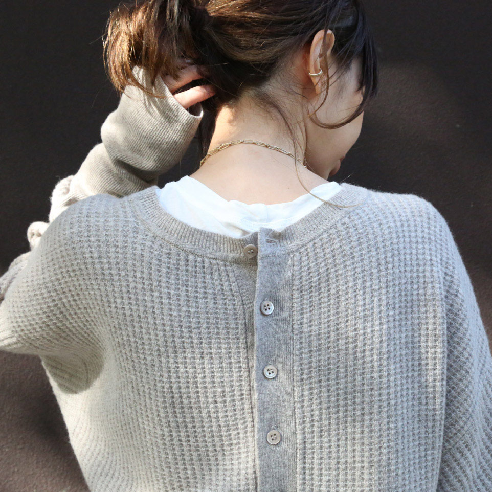 カットソー生地が多いサーマルを、より大人の女性が着ていただきやすいようにニット生地で作ったこだわりの1品。ベーシックアイテムだからこそ色にはこだわり、ニュアンスカラーが美しいカシミア8%のイタリア糸を使用。