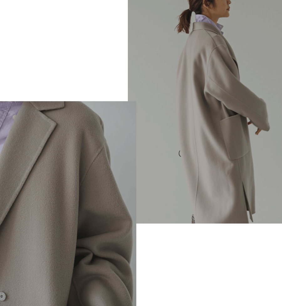 身体に馴染む柔らかさと、優しく包みこむふっくら感を最大限に引き出しているコートなんです。