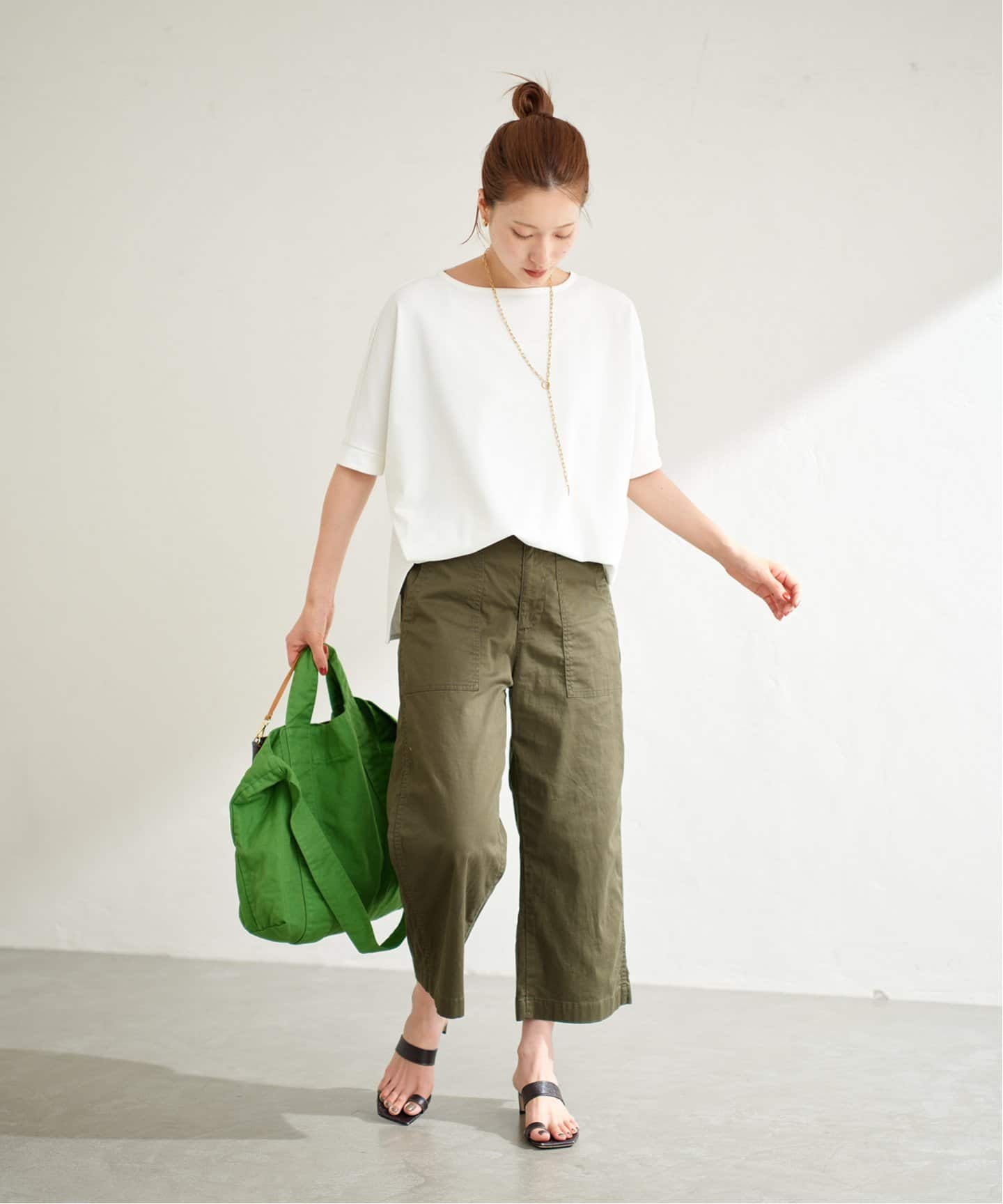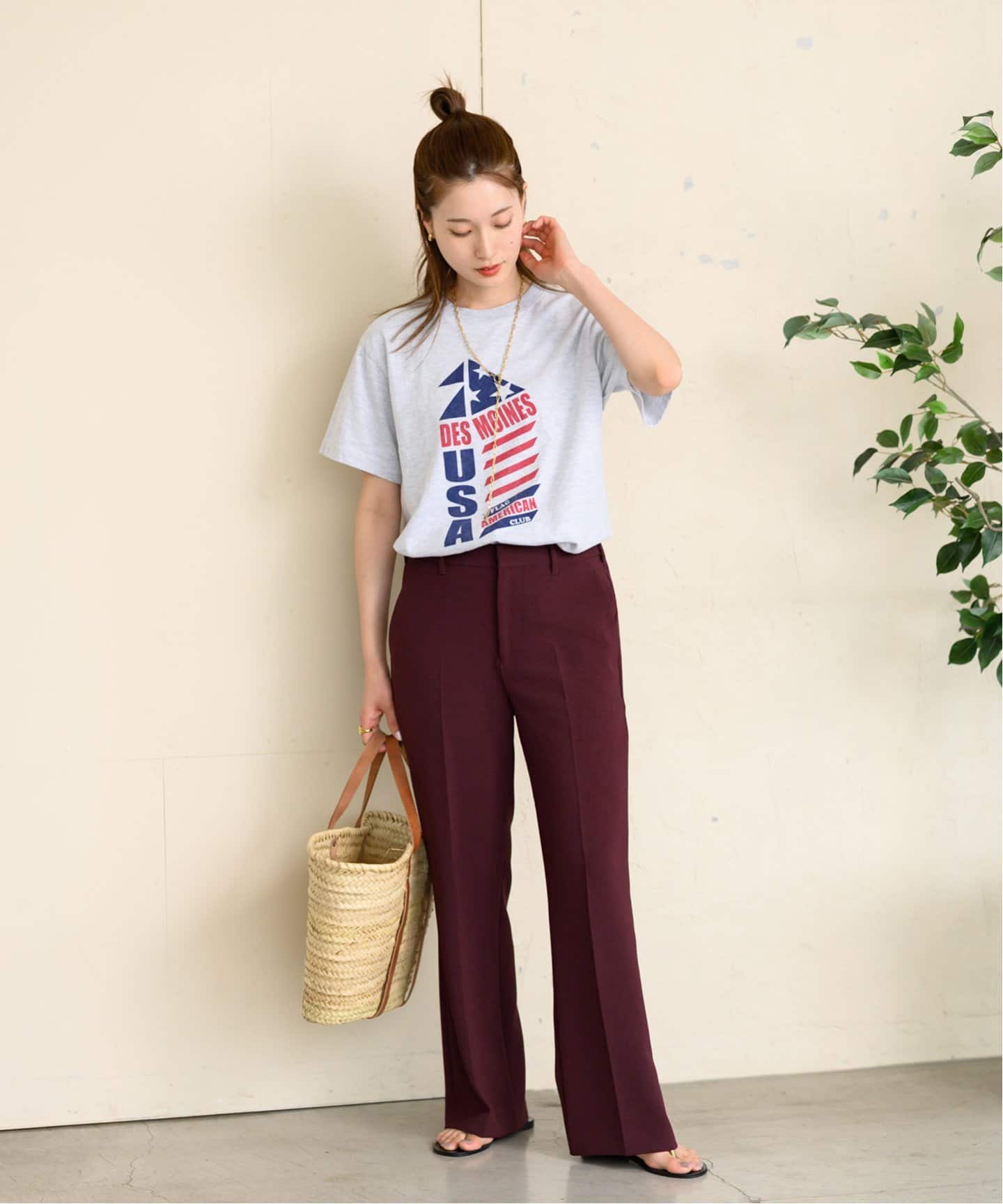 ハンサムパンツなら照れずにはけるカラーパンツのおすすめは色馴染み良くこなれ感を上乗せできるカーキ系。ハンサムなセンタープレスパンツはぐっとクラシカルに華やぐボルドーをレコメンド。