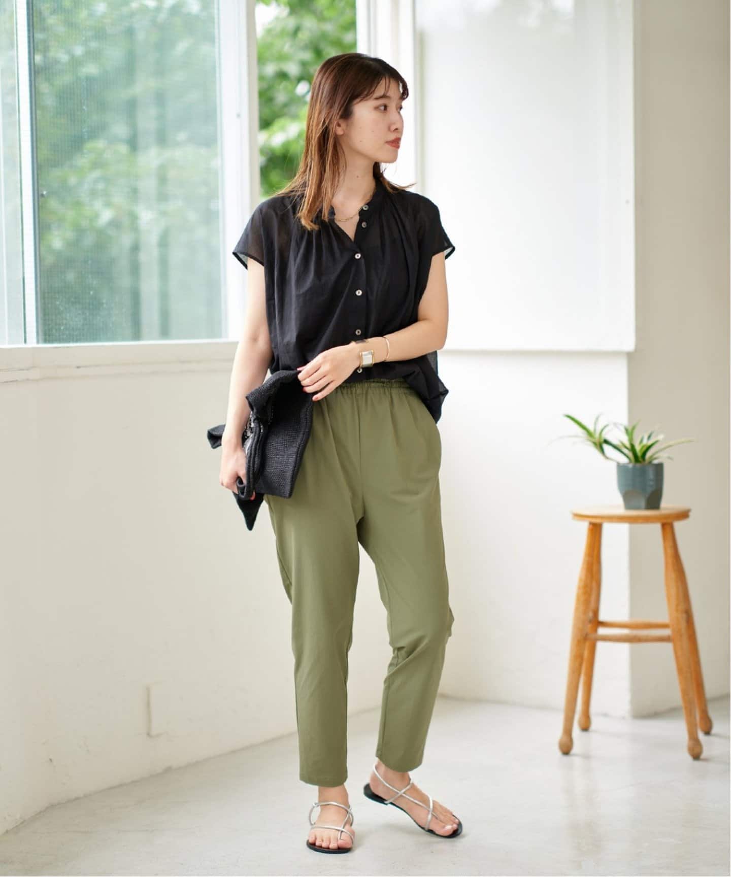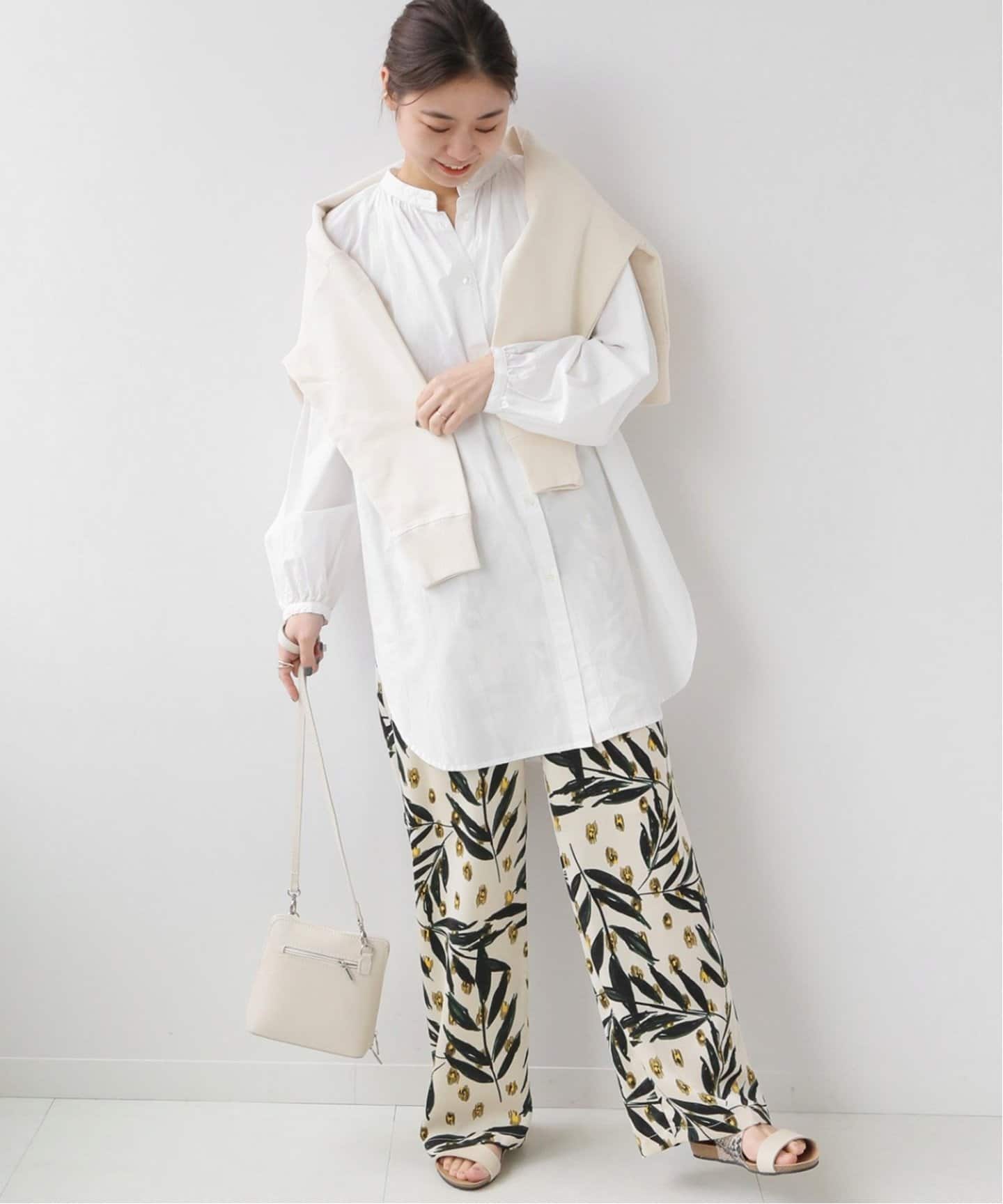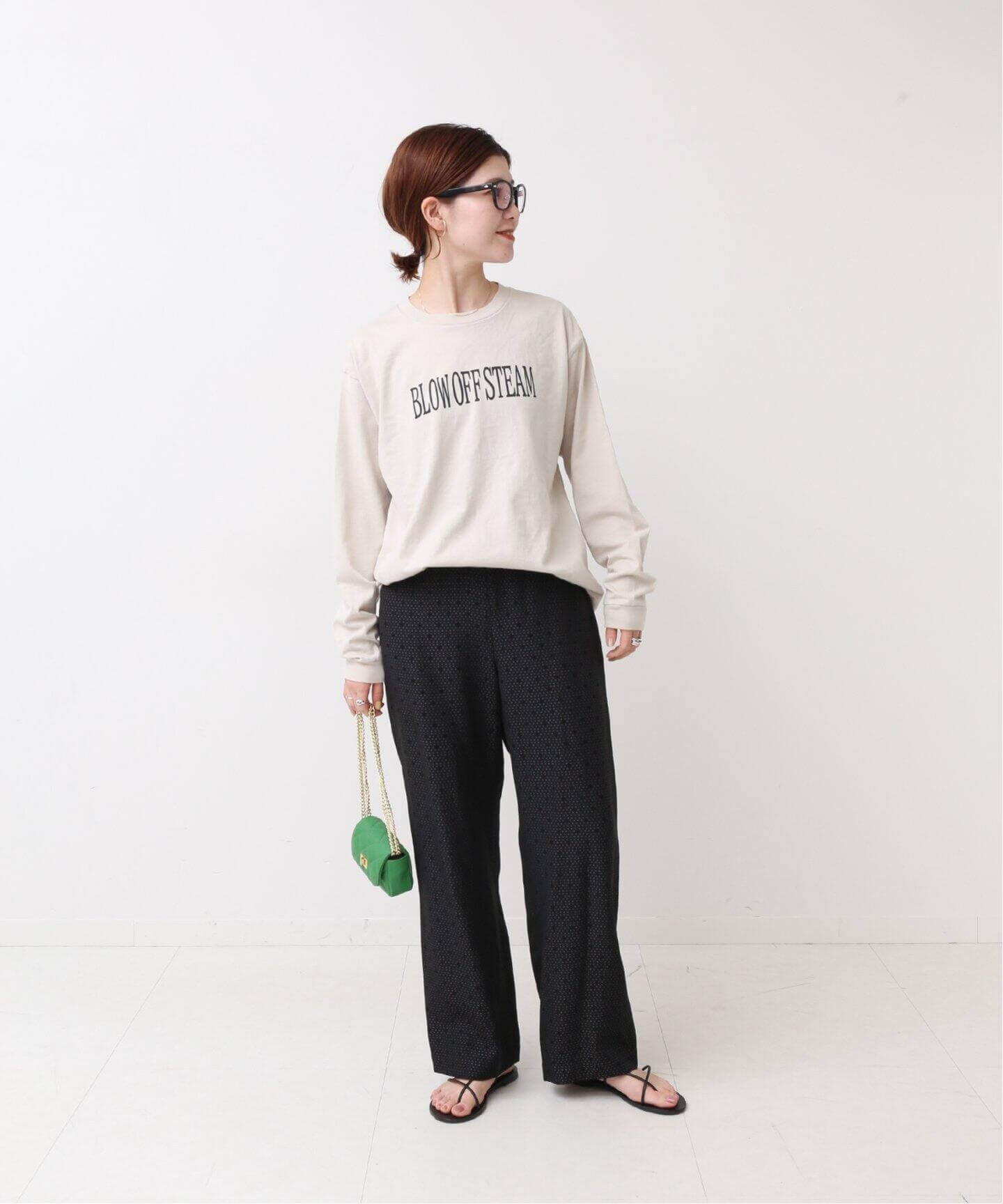 モノトーンなら大人顔に格上げ柄物のイージーパンツは、シーズンレスに活躍してモダンさも漂うモノトーンがグッド。ドットジャカードパンツは、イージーだけど上品なパンツコーデに格上げ。